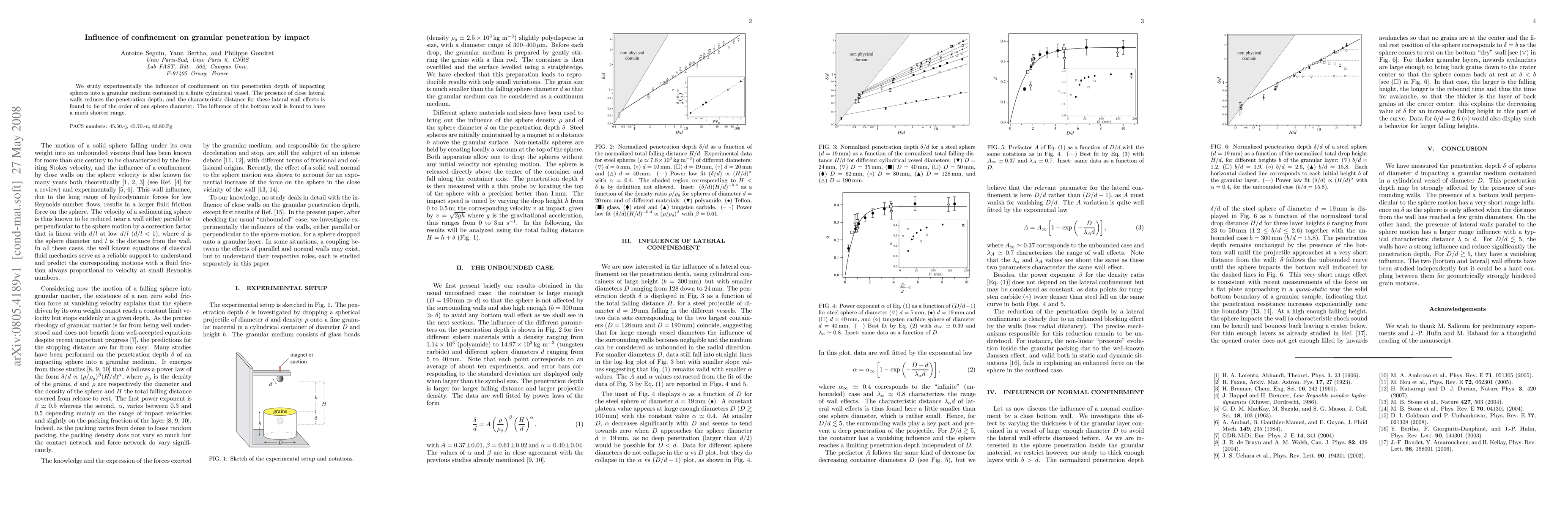 This study experimentally investigates how confinement affects the penetration depth of spheres impacting a granular medium within a cylindrical vessel. Results show that lateral walls reduce penetration depth, with effects noticeable within one sphere diameter, while the bottom wall's influence is more localized.