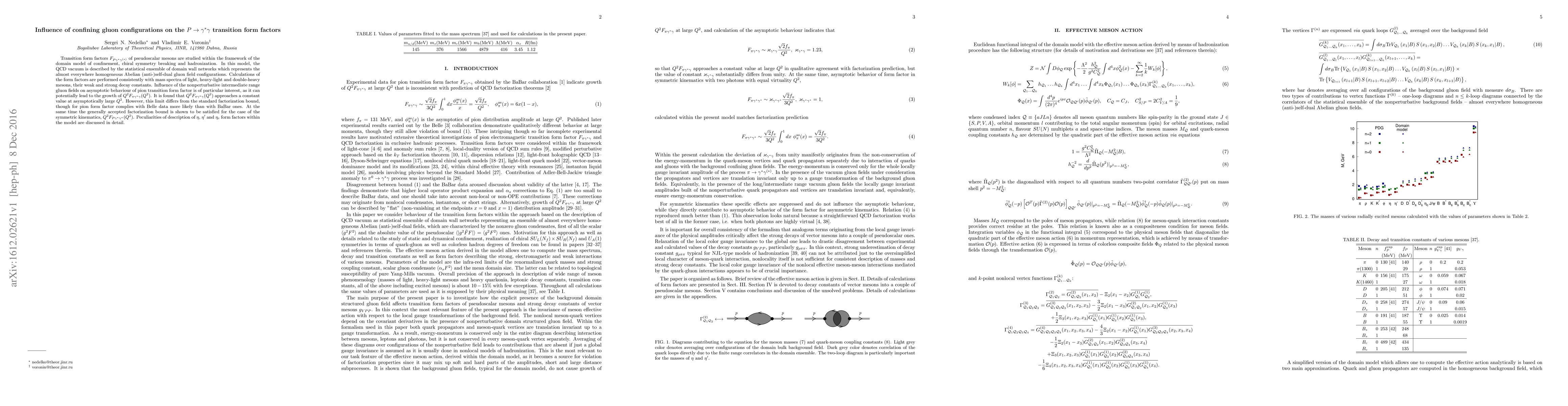 Transition form factors $F_{P\gamma^*\gamma^{(*)}}$ of pseudoscalar mesons are studied within the framework of the domain model of confinement, chiral symmetry breaking and hadronization. In this model, the QCD vacuum is described by the statistical ensemble of domain wall networks which represents the almost everywhere homogeneous Abelian (anti-)self-dual gluon field configurations. Calculations of the form factors are performed consistently with mass spectra of light, heavy-light and double-heavy mesons, their weak and strong decay constants. Influence of the nonperturbative intermediate range gluon fields on asymptotic behaviour of pion transition form factor is of particular interest, as it can potentially lead to the growth of $Q^2F_{\pi\gamma^*\gamma}(Q^2)$. It is found that $Q^2F_{\pi\gamma^*\gamma}(Q^2)$ approaches a constant value at asymptotically large $Q^2$. However, this limit differs from the standard factorization bound, though for pion form factor complies with Belle data more likely than with BaBar ones. At the same time the generally accepted factorization bound is shown to be satisfied for the case of the symmetric kinematics, $Q^2F_{P\gamma^*\gamma^*}(Q^2)$. Peculiarities of description of $\eta$, $\eta'$ and $\eta_c$ form factors within the model are discussed in detail.