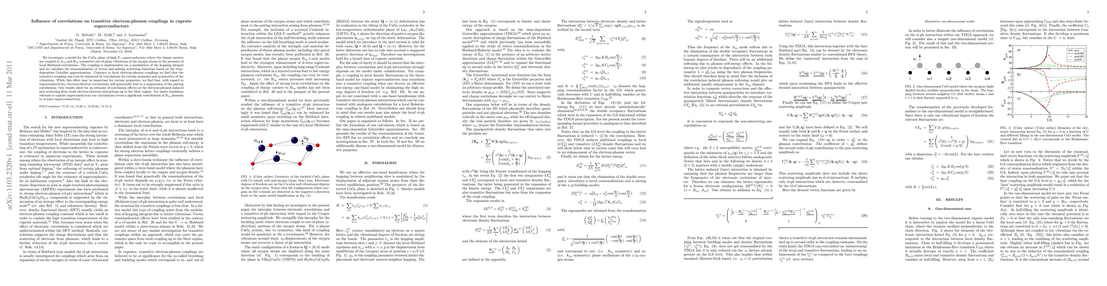 We investigate a model for the CuO_2 plane of high-T_c superconductors where the charge carriers are coupled to A_{1g} and B_{1g} symmetric out-of plane vibrations of the oxygen atoms in the presence of local Hubbard correlations. The coupling is implemented via a modulation of the hopping integral and we calculate the renormalization of vertex and pairing scattering functions based on the time-dependent Gutziller approximation. Contrary to local electron-phonon couplings we find that the transitive coupling can even be enhanced by correlations for certain momenta and symmetries of the vibrations. While this effect may be important for certain properties, we find that, with regard to superconductivity, electron-electron correlations still generically lead to a suppression of the pairing correlations. Our results allow for an estimate of correlation effects on the electron-phonon induced pair scattering from weak electron-electron interactions up to the Mott regime. For onsite repulsions relevant to cuprate superconductors our calculations reveal a significant contribution of B_{1g} phonons to d-wave superconductivity.