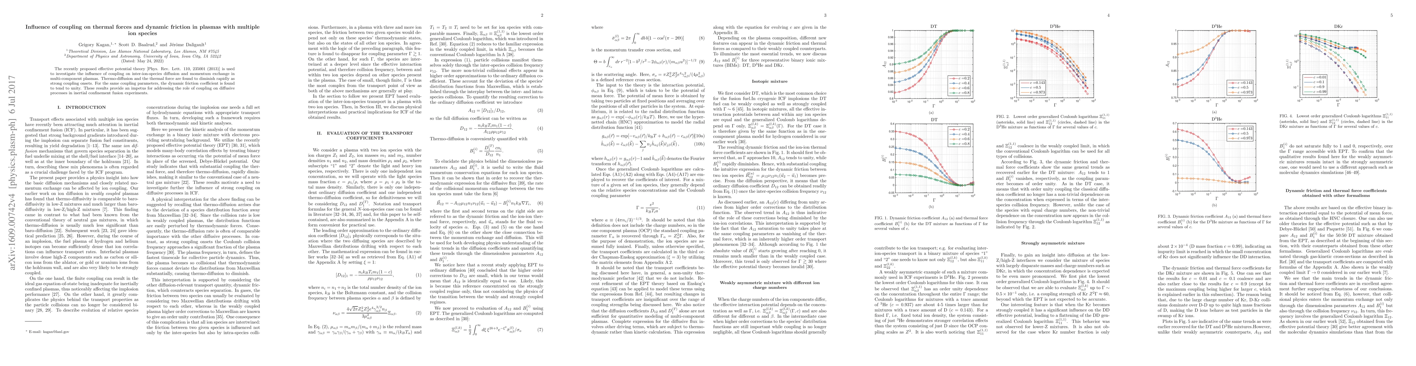 The recently proposed effective potential theory [Phys. Rev. Lett. 110, 235001 (2013)] is used to investigate the influence of coupling on inter-ion-species diffusion and momentum exchange in multi-component plasmas. Thermo-diffusion and the thermal force are found to diminish rapidly as strong coupling onsets. For the same coupling parameters, the dynamic friction coefficient is found to tend to unity. These results provide an impetus for addressing the role of coupling on diffusive processes in inertial confinement fusion experiments.
