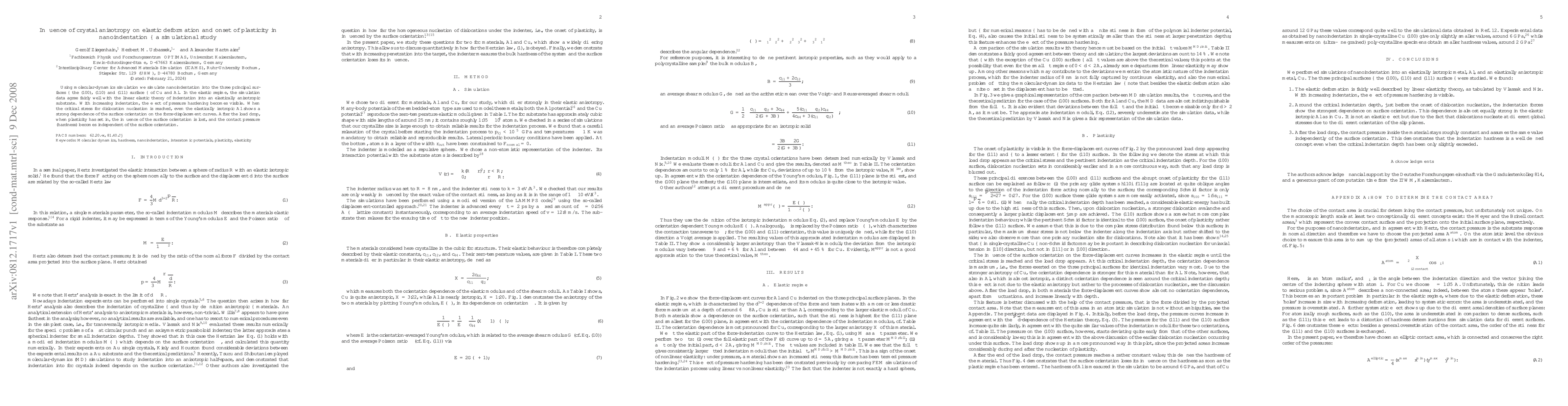 Using molecular-dynamics simulation and finite-element modelling, we simulate nanoindentation into the three principal surfaces -- the (100), (110) and (111) surface -- of Cu and Al. In the elastic regime, the simulation data agree fairly well with the linear elastic theory of indentation into an elastically anisotropic substrate. With increasing indentation, the effect of pressure hardening becomes visible. When the critical stress for dislocation nucleation is reached, even the elastically isotropic Al shows a strong dependence of the surface orientation on the force-displacement curves. After the load drop, when plasticity ahs set in, the influence of the surface orientation is lost, and the contact pressure (hardness) becomes independent of the surface orientation.