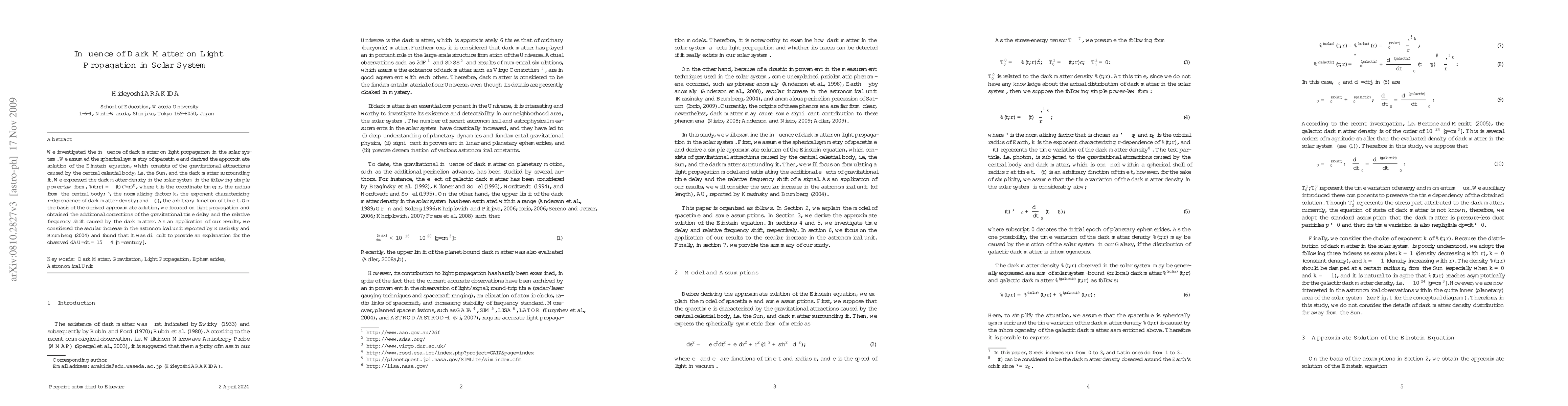 This paper investigates how dark matter affects light propagation in our solar system, finding additional corrections to gravitational time delay and frequency shift, which may help explain a reported increase in the astronomical unit over time.