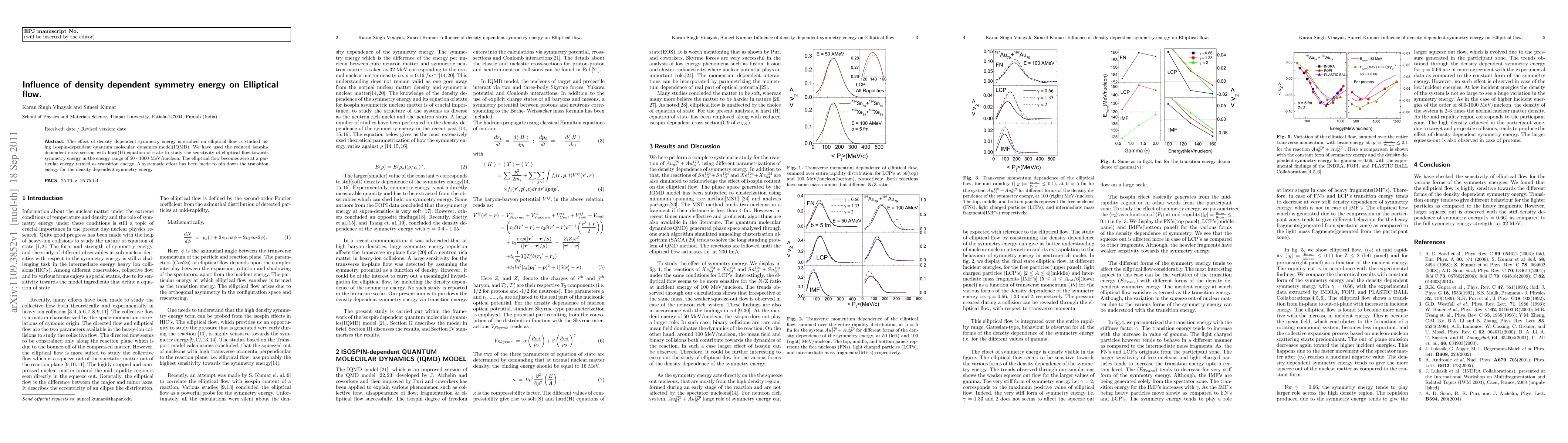 This study investigates how density-dependent symmetry energy influences elliptical flow using the IQMD model, finding that elliptical flow diminishes at a specific transition energy, which varies with the symmetry energy's density dependence.