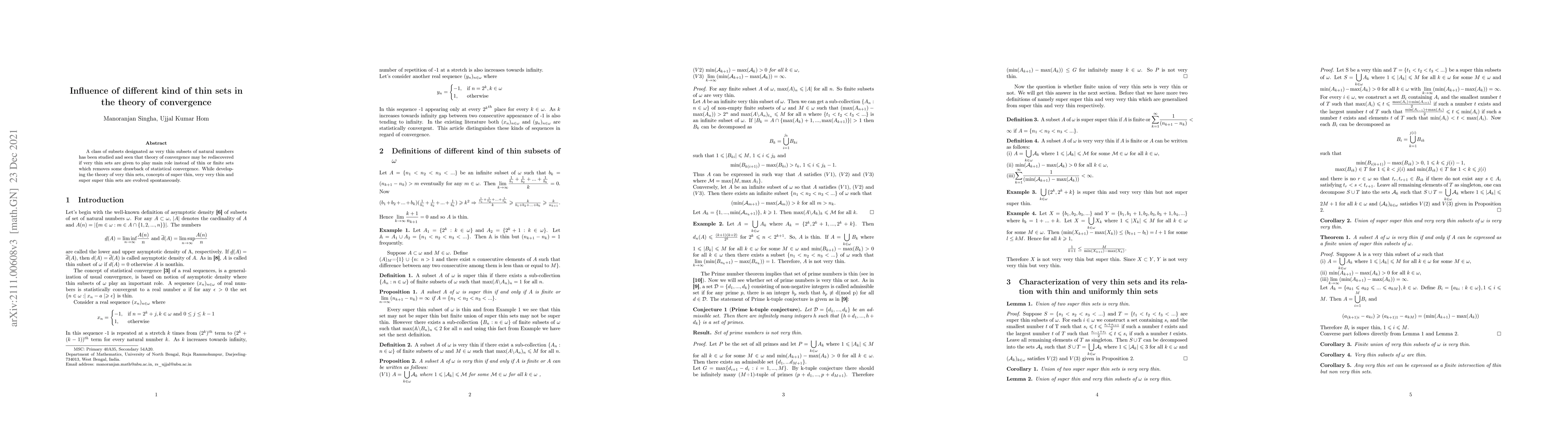 This paper explores 'very thin' subsets of natural numbers, proposing they can redefine convergence theory, overcoming limitations of traditional thin or finite sets. New concepts like 'super thin', 'very very thin', and 'super super thin' sets emerge from this development.