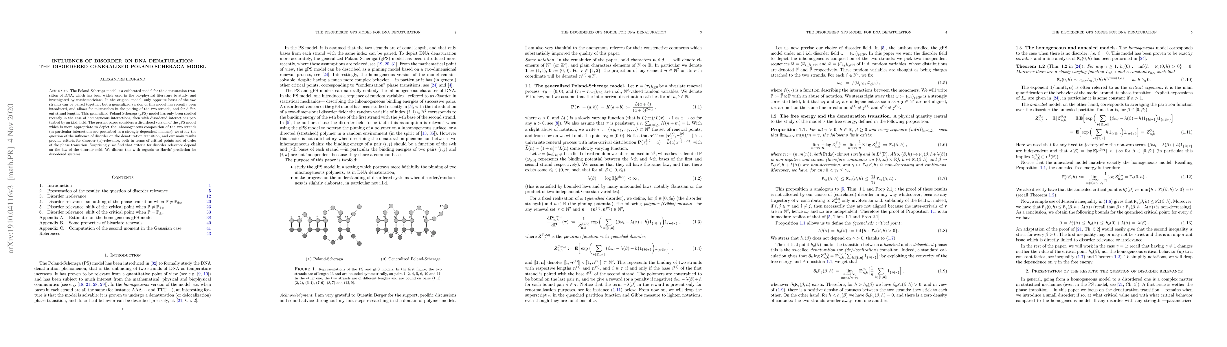 The Poland-Scheraga model is a celebrated model for the denaturation transition of DNA, which has been widely used in the bio-physical literature to study, and investigated by mathematicians. In the original model, only opposite bases of the two strands can be paired together, but a generalized version of this model has recently been introduced, and allows for mismatches in the pairing of the two strands, and for different strand lengths. This generalized Poland-Scheraga (gPS) model has only been studied recently in the case of homogeneous interactions, then with disordered interactions perturbed by an i.i.d. field. The present paper considers a disordered version of the gPS model which is more appropriate to depict the inhomogeneous composition of the two strands (in particular interactions are perturbed in a strongly dependent manner): we study the question of the influence of disorder on the denaturation transition, and our main results provide criteria for disorder (ir)-relevance, both in terms of critical points and of order of the phase transition. Surprisingly, we find that criteria for disorder relevance depend on the law of the disorder field. We discuss this with regards to Harris' prediction for disordered systems.