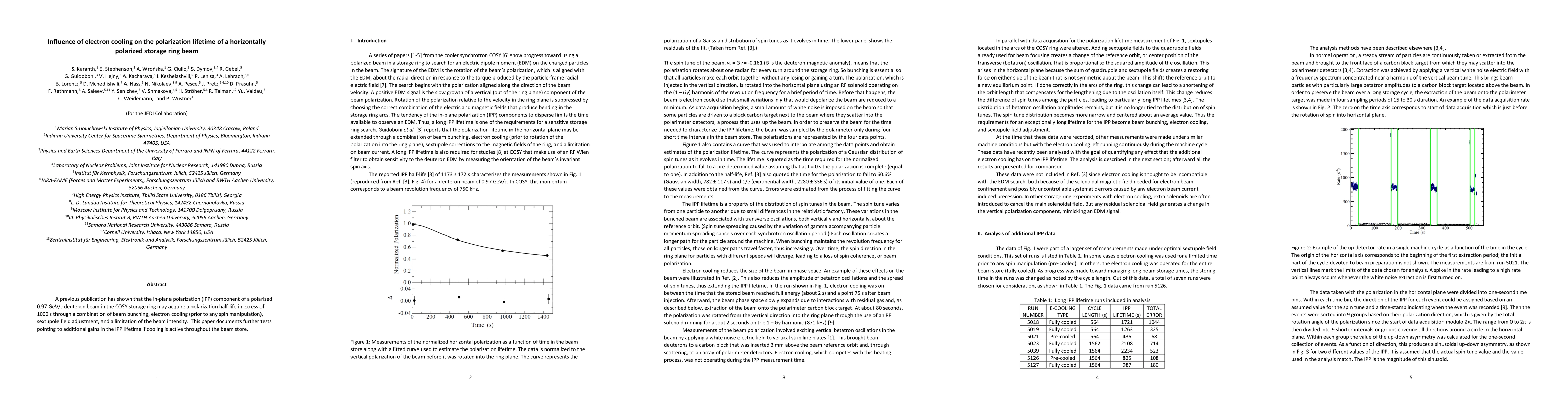 This paper investigates how continuous electron cooling during storage enhances the in-plane polarization lifetime of a horizontally polarized beam in the COSY storage ring, confirming that maintaining cooling improves polarization retention beyond 1000 seconds.