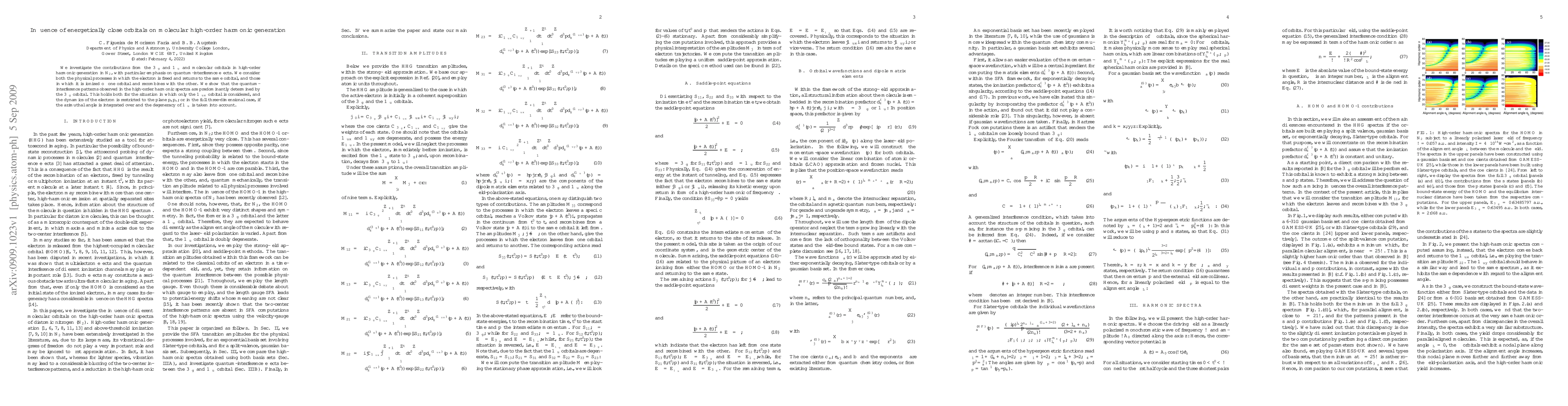 We investigate the contributions from the $3\sigma_{g}$ and $1\pi_{u}$ and molecular orbitals in high-order harmonic generation in $N_{2}$, with particular emphasis on quantum-interference effects. We consider both the physical processes in which the electron is freed and returns to the same orbital, and those in which it is ionized off one orbital and recombines with the other. We show that the quantum-interference patterns observed in the high-order harmonic spectra are predominantly determined by the $3\sigma_{g}$ orbital. This holds both for the situation in which only the $1\pi_{ux}$ orbital is considered, and the dynamics of the electron is restricted to the plane $p_{x}p_{z},$ or in the full three-dimensional case, if the azimuthal angle is integrated over and the degeneracy of $1\pi_{u}$ is taken into account.