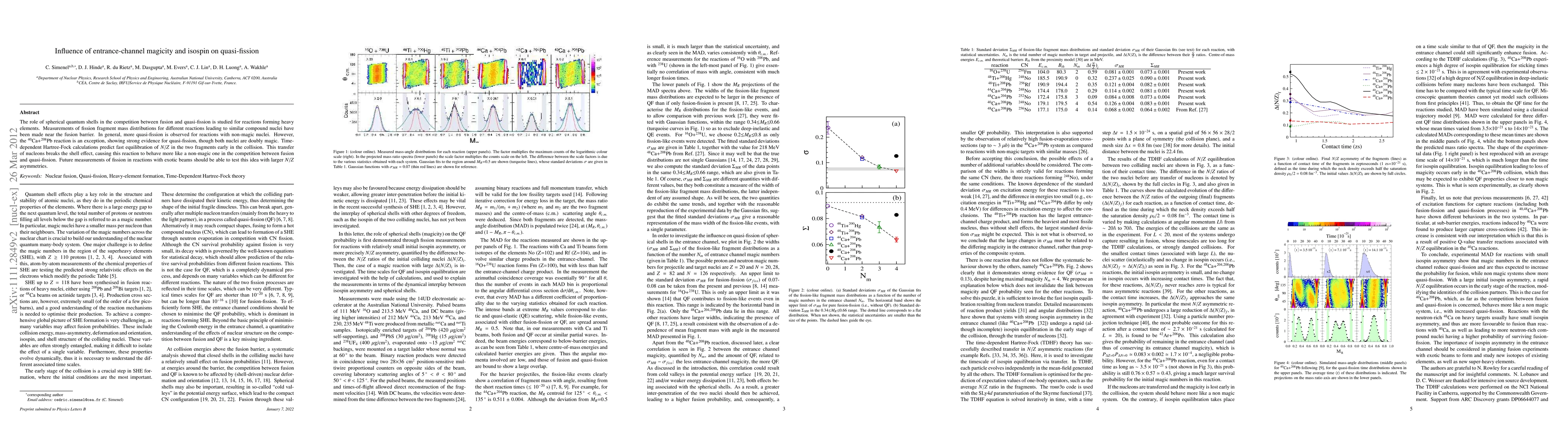 The study utilized measurements of fission fragment mass distributions for reactions leading to similar compound nuclei near the fusion barrier, supplemented by Time-dependent Hartree-Fock calculations.