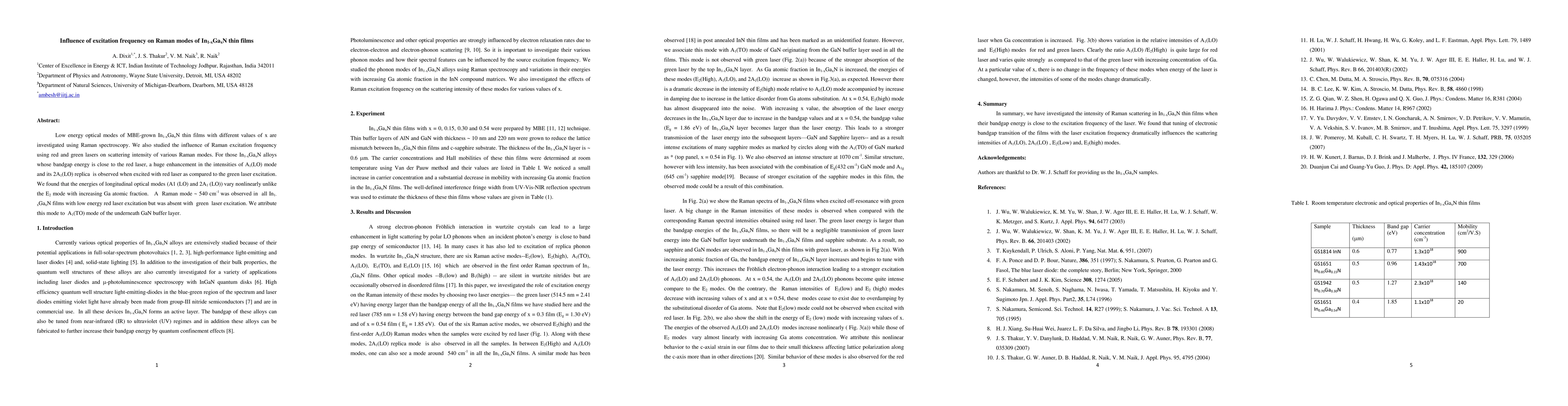 The study used Raman spectroscopy to investigate the impact of excitation frequency on the scattering intensity of different Raman modes in In1-xGaxN thin films.