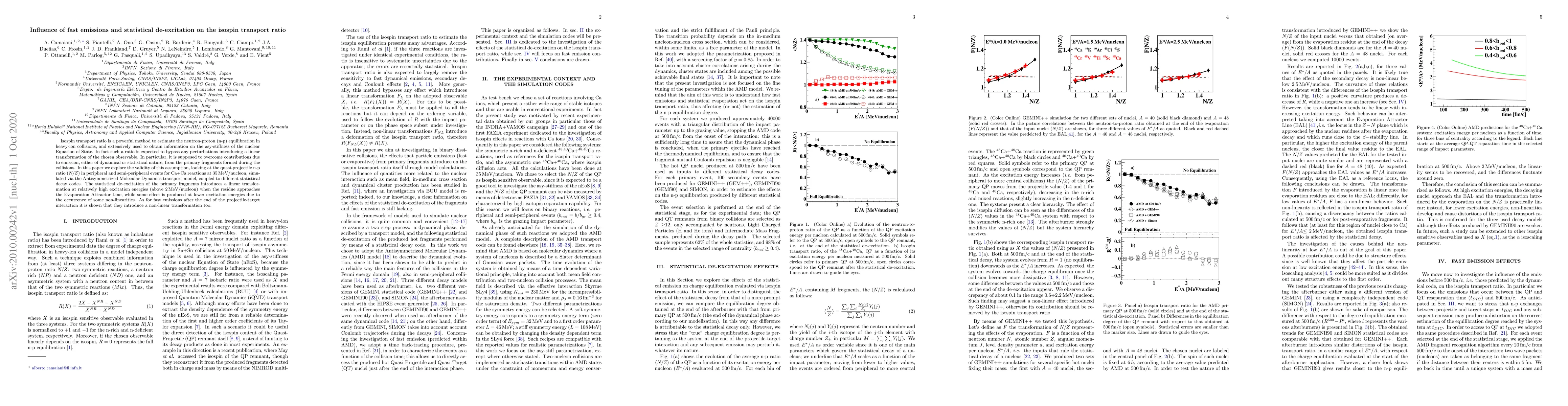 This paper investigates the influence of fast emissions and statistical de-excitation on the isospin transport ratio in heavy-ion collisions, finding that both processes introduce non-linear transformations that affect the neutron-proton equilibration estimation. The study uses simulations of Ca+Ca reactions at 35 MeV to analyze the quasi-projectile N/Z ratio.