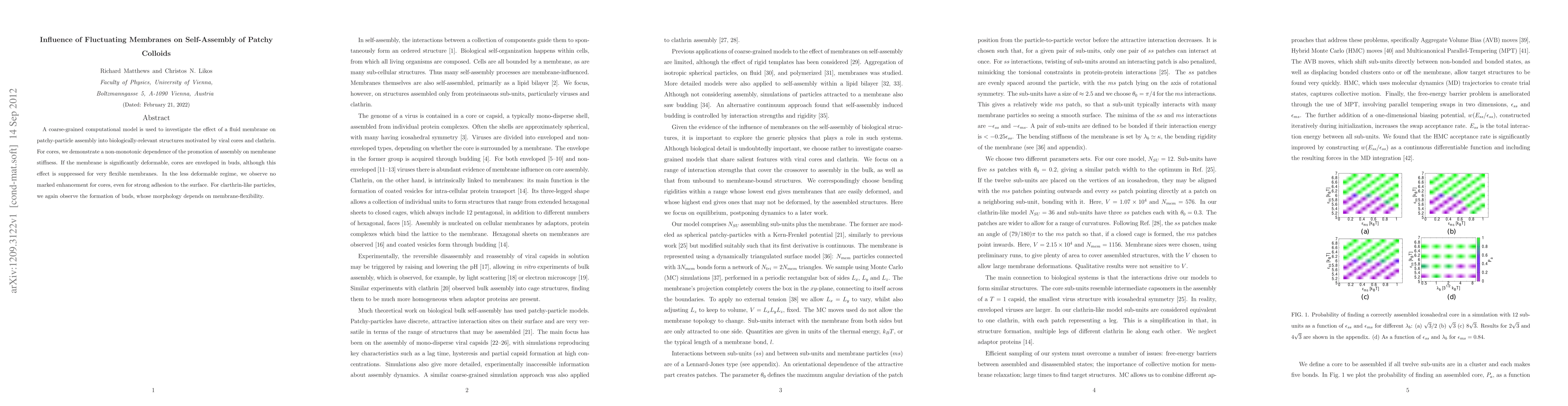 A coarse-grained computational model is used to investigate the effect of a fluid membrane on patchy-particle assembly into biologically-relevant structures motivated by viral cores and clathrin. For cores, we demonstrate a non-monotonic dependence of the promotion of assembly on membrane stiffness. If the membrane is significantly deformable, cores are enveloped in buds, although this effect is suppressed for very flexible membranes. In the less deformable regime, we observe no marked enhancement for cores, even for strong adhesion to the surface. For clarthrin-like particles, we again observe the formation of buds, whose morphology depends on membrane-flexibility.