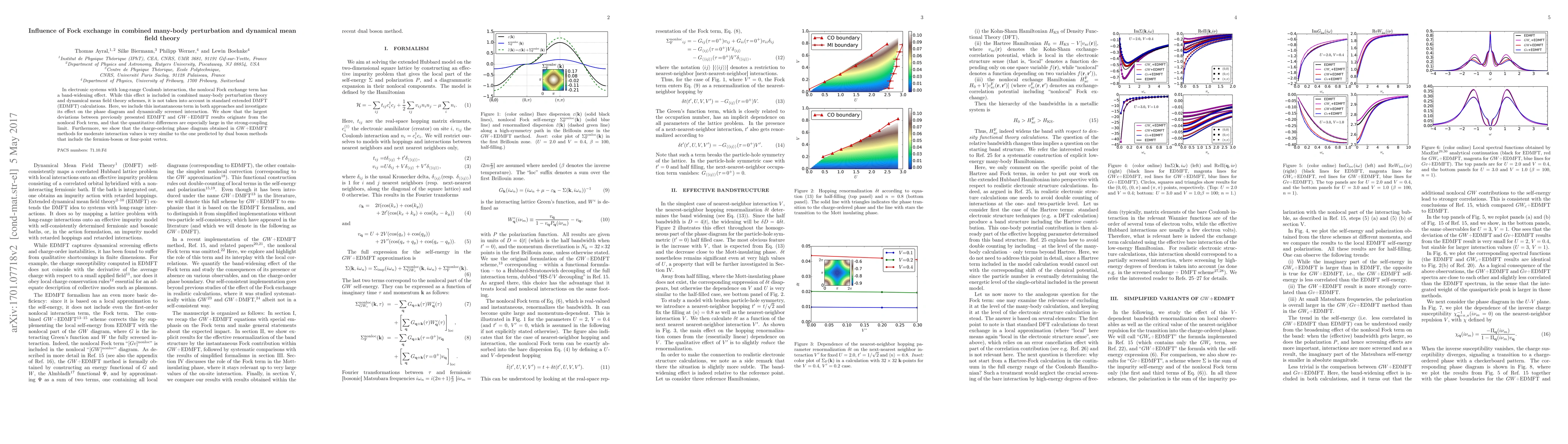 This paper investigates the inclusion of the nonlocal Fock exchange term in combined many-body perturbation and dynamical mean field theory, revealing significant deviations from standard EDMFT calculations, especially in the strong-coupling regime. The study shows that the charge-ordering phase diagram from $GW$+EDMFT closely matches that from dual boson methods.