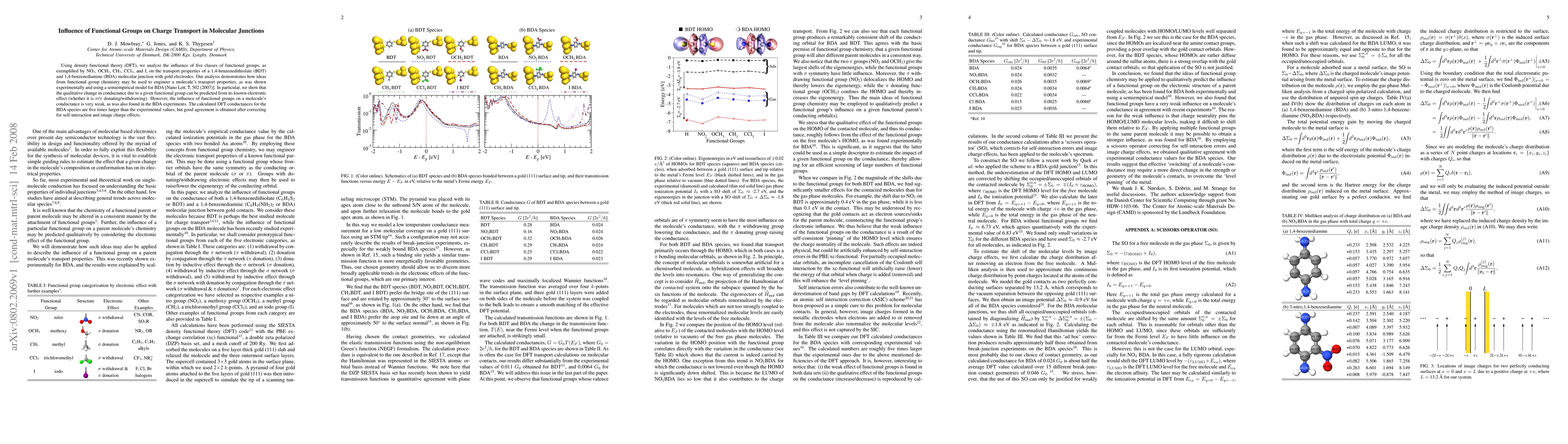 Using density functional theory (DFT), we analyze the influence of five classes of functional groups, as exemplified by NO2, OCH3, CH3, CCl3, and I, on the transport properties of a 1,4-benzenedithiolate (BDT) and 1,4-benzenediamine (BDA) molecular junction with gold electrodes. Our analysis demonstrates how ideas from functional group chemistry may be used to engineer a molecule's transport properties, as was shown experimentally and using a semiempirical model for BDA [Nano Lett. 7, 502 (2007)]. In particular, we show that the qualitative change in conductance due to a given functional group can be predicted from its known electronic effect (whether it is pi/sigma donating/withdrawing). However, the influence of functional groups on a molecule's conductance is very weak, as was also found in the BDA experiments. The calculated DFT conductances for the BDA species are five times larger than the experimental values, but good agreement is obtained after correcting for self-interaction and image charge effects.