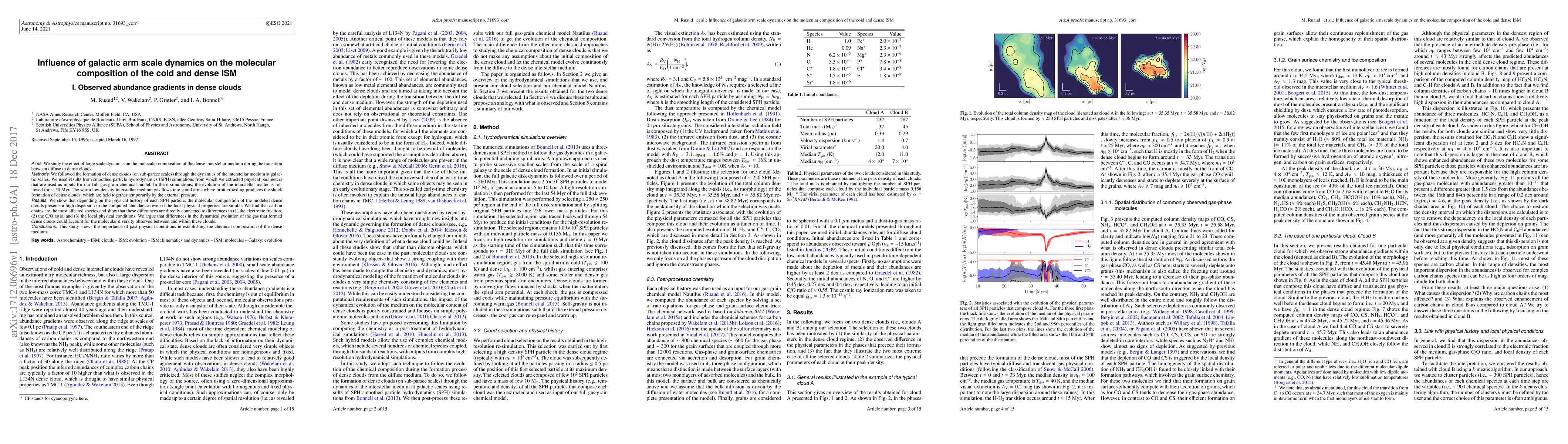 Aims. We study the effect of large scale dynamics on the molecular composition of the dense interstellar medium during the transition between diffuse to dense clouds. Methods. We followed the formation of dense clouds (on sub-parsec scales) through the dynamics of the interstellar medium at galac- tic scales. We used results from smoothed particle hydrodynamics (SPH) simulations from which we extracted physical parameters that are used as inputs for our full gas-grain chemical model. In these simulations, the evolution of the interstellar matter is followed for ~50 Myr. The warm low-density interstellar medium gas flows into spiral arms where orbit crowding produces the shock formation of dense clouds, which are held together temporarily by the external pressure. Results. We show that depending on the physical history of each SPH particle, the molecular composition of the modeled dense clouds presents a high dispersion in the computed abundances even if the local physical properties are similar. We find that carbon chains are the most affected species and show that these differences are directly connected to differences in (1) the electronic fraction, (2) the C/O ratio, and (3) the local physical conditions. We argue that differences in the dynamical evolution of the gas that formed dense clouds could account for the molecular diversity observed between and within these clouds. Conclusions. This study shows the importance of past physical conditions in establishing the chemical composition of the dense medium.