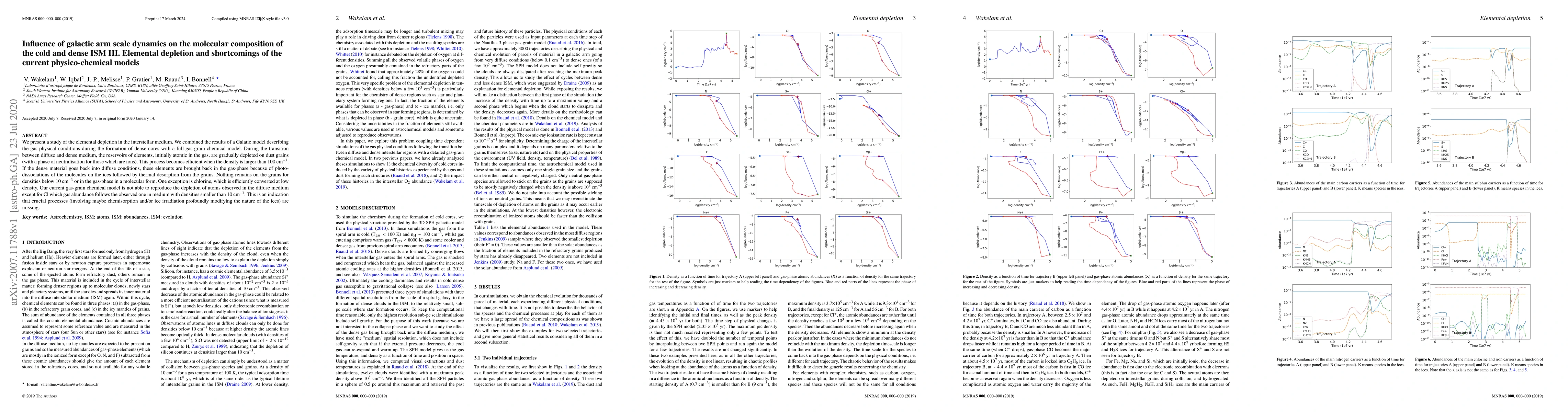 We present a study of the elemental depletion in the interstellar medium. We combined the results of a Galatic model describing the gas physical conditions during the formation of dense cores with a full-gas-grain chemical model. During the transition between diffuse and dense medium, the reservoirs of elements, initially atomic in the gas, are gradually depleted on dust grains (with a phase of neutralisation for those which are ions). This process becomes efficient when the density is larger than 100~cm$^{-3}$. If the dense material goes back into diffuse conditions, these elements are brought back in the gas-phase because of photo-dissociations of the molecules on the ices followed by thermal desorption from the grains. Nothing remains on the grains for densities below 10~cm$^{-3}$ or in the gas-phase in a molecular form. One exception is chlorine, which is efficiently converted at low density. Our current gas-grain chemical model is not able to reproduce the depletion of atoms observed in the diffuse medium except for Cl which gas abundance follows the observed one in medium with densities smaller than 10~cm$^{-3}$. This is an indication that crucial processes (involving maybe chemisorption and/or ice irradiation profoundly modifying the nature of the ices) are missing.