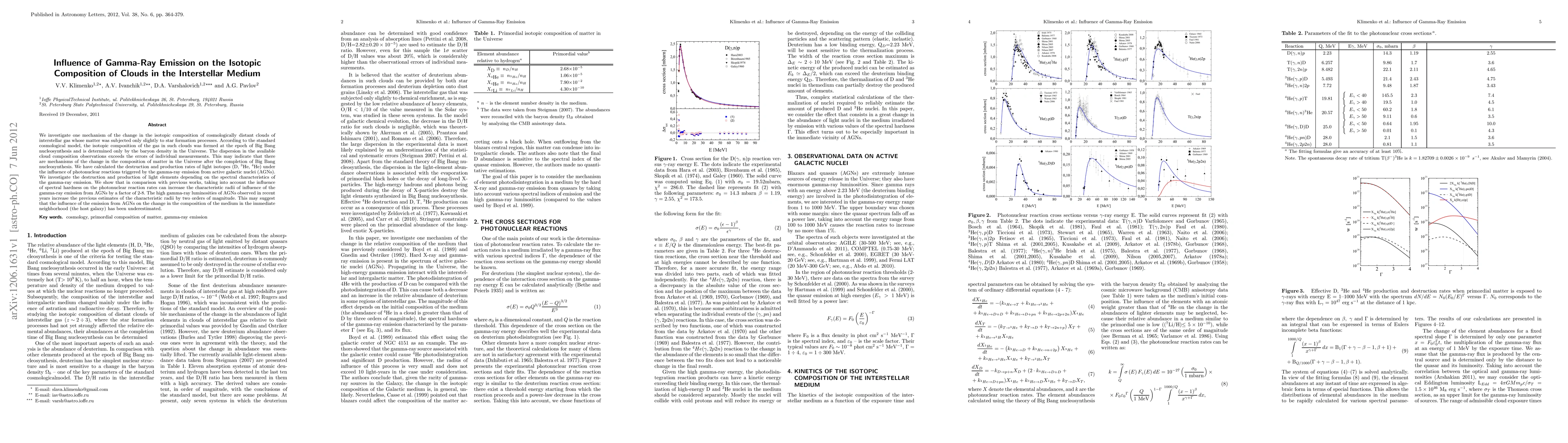 Gamma-ray emission from active galactic nuclei influences the isotopic composition of distant clouds in the interstellar medium, potentially altering their formation and evolution after the Big Bang nucleosynthesis.