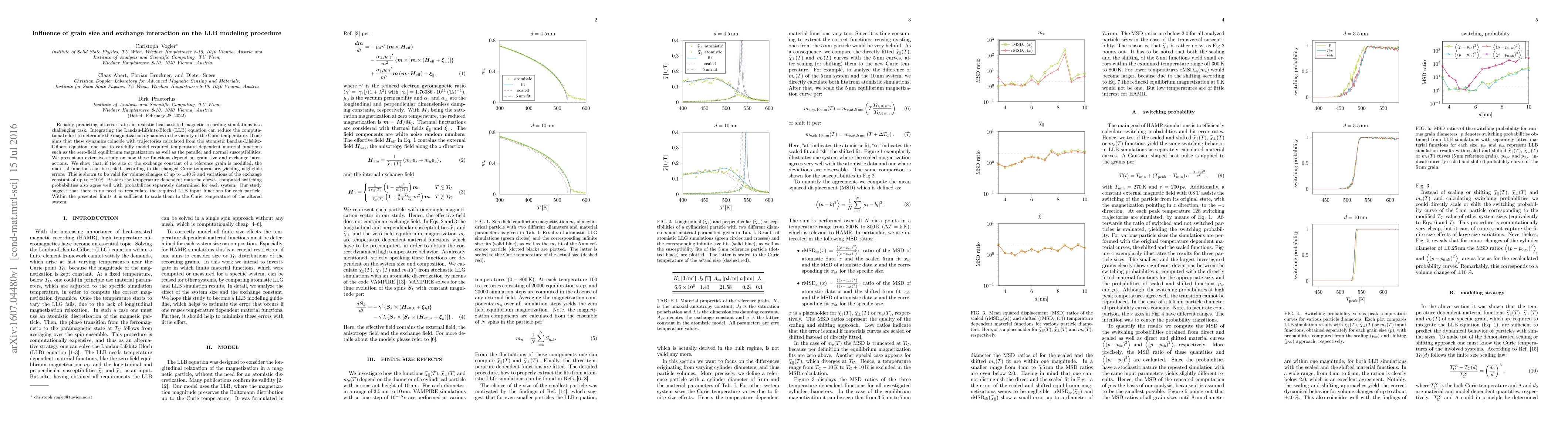 Reliably predicting bit-error rates in realistic heat-assisted magnetic recording simulations is a challenging task. Integrating the Landau-Lifshitz-Bloch (LLB) equation can reduce the computational effort to determine the magnetization dynamics in the vicinity of the Curie temperature. If one aims that these dynamics coincide with trajectories calculated from the atomistic Landau-Lifshitz-Gilbert equation, one has to carefully model required temperature dependent material functions such as the zero-field equilibrium magnetization as well as the parallel and normal susceptibilities. We present an extensive study on how these functions depend on grain size and exchange interactions. We show that, if the size or the exchange constant of a reference grain is modified, the material functions can be scaled, according to the changed Curie temperature, yielding negligible errors. This is shown to be valid for volume changes of up to $\pm 40$ % and variations of the exchange constant of up to $\pm10$ %. Besides the temperature dependent material curves, computed switching probabilities also agree well with probabilities separately determined for each system. Our study suggest that there is no need to recalculate the required LLB input functions for each particle. Within the presented limits it is sufficient to scale them to the Curie temperature of the altered system.