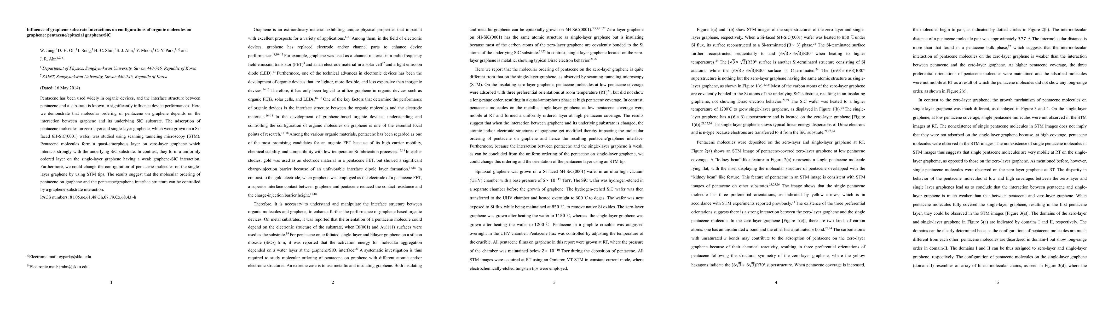 This study investigates how graphene-substrate interactions affect pentacene molecular configurations on graphene. STM observations reveal that pentacene forms a quasi-amorphous layer on zero-layer graphene due to strong graphene-SiC interactions, while it forms an ordered layer on single-layer graphene with weak interactions, indicating control over pentacene configuration via substrate interaction.