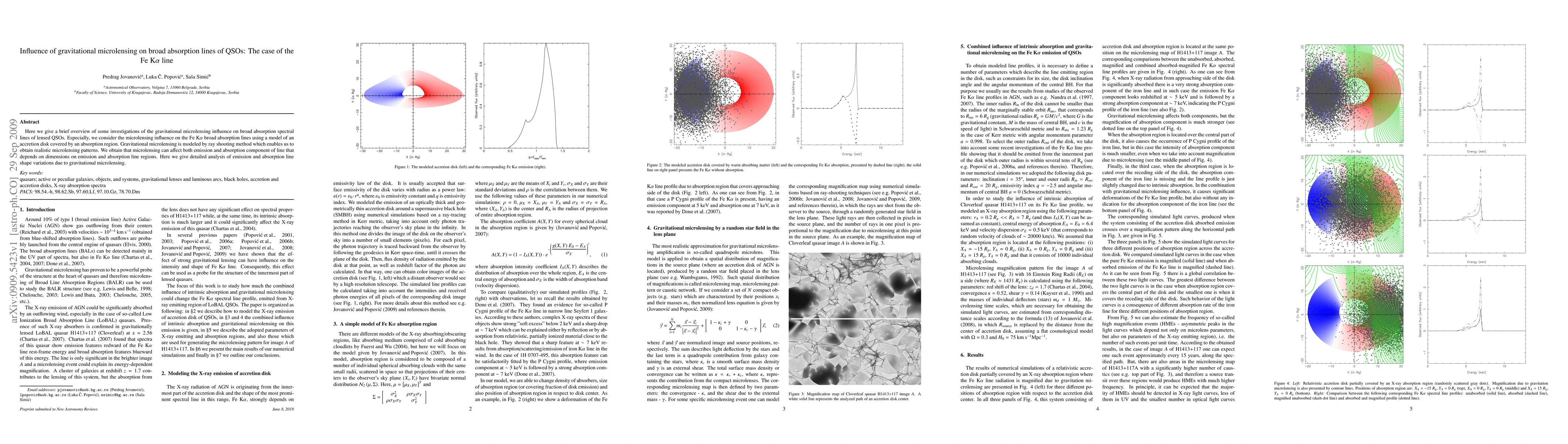 Here we give a brief overview of some investigations of the gravitational microlensing influence on broad absorption spectral lines of lensed QSOs. Especially, we consider the microlensing influence on the Fe K$\alpha$ broad absorption lines using a model of an accretion disk covered by an absorption region. Gravitational microlensing is modeled by ray shooting method which enables us to obtain realistic microlensing patterns. We obtain that microlensing can affect both emission and absorption component of line that depends on dimensions on emission and absorption line regions. Here we give detailed analysis of emission and absorption line shape variations due to gravitational microlensing.