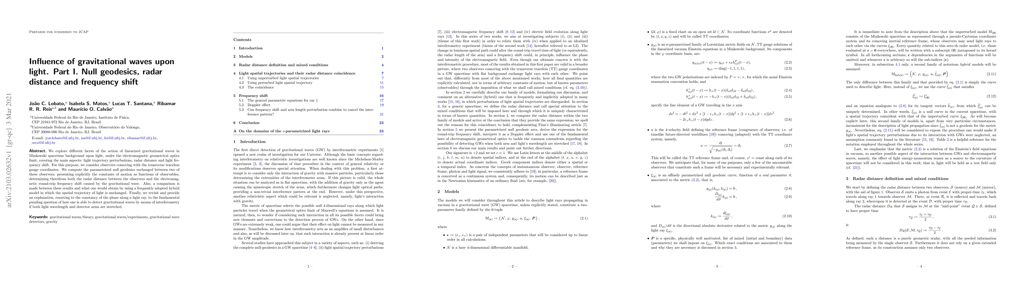 We explore different facets of the action of linearized gravitational waves in Minkowski spacetime background upon light, under the electromagnetic geometrical optics limit, covering the main aspects: light trajectory perturbations, radar distance and light frequency shift. For this purpose, we consider observers comoving with the transverse traceless gauge coordinates. We compute the parametrized null geodesics exchanged between two of these observers, presenting explicitly the constants of motion as functions of observables, determining therefrom both the radar distance between the observers and the electromagnetic round-trip frequency shift caused by the gravitational wave. Also, a comparison is made between these results and what one would obtain by using a frequently adopted hybrid model in which the spatial trajectory of light is unchanged. Finally, we revisit and provide an explanation, resorting to the constancy of the phase along a light ray, to the fundamental puzzling question of how one is able to detect gravitational waves by means of interferometry if both light wavelength and detector arms are stretched.