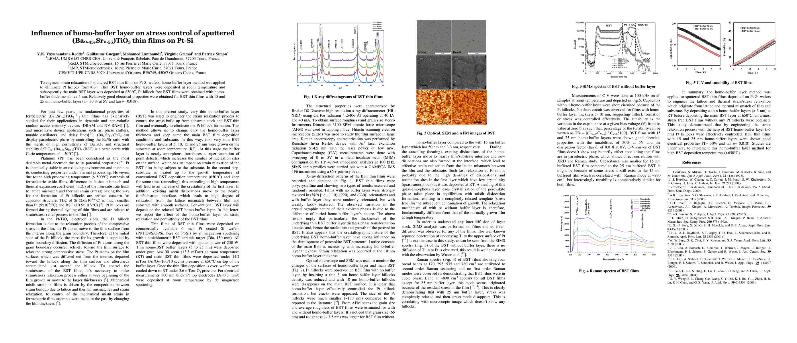 Researchers found that adding a thin layer (homo-buffer) between Pt-Si and BST thin films improves the electrical properties of BST films, while eliminatingPt hillock formation.