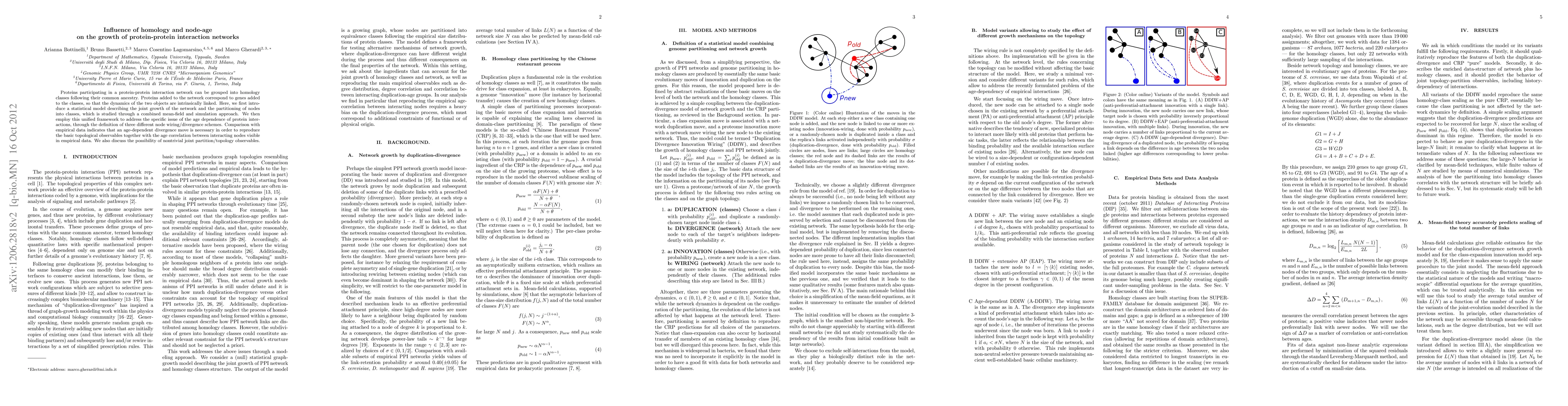 A study explores how homology and node age affect growth in protein-protein interaction networks, finding that an age-dependent divergence is necessary to reproduce observed topological features.
