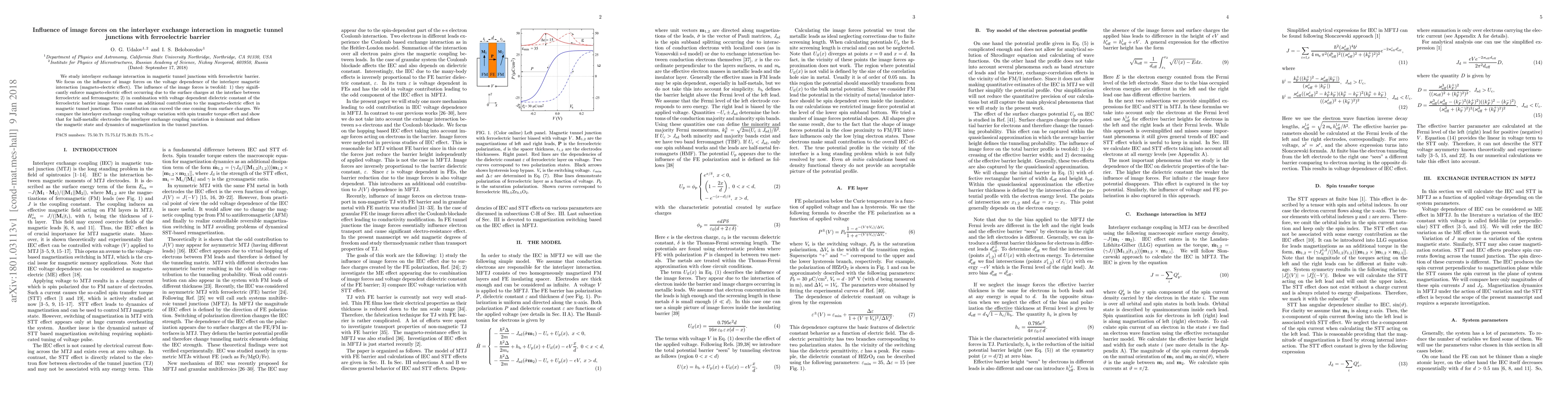 We study interlayer exchange interaction in magnetic tunnel junctions with ferroelectric barrier. We focus on the influence of image forces on the voltage dependence of the interlayer magnetic interaction (magneto-electric effect). The influence of the image forces is twofold: 1) they significantly enforce magneto-electric effect occurring due to the surface charges at the interface between ferroelectric and ferromagnets; 2) in combination with voltage dependent dielectric constant of the ferroelectric barrier image forces cause an additional contribution to the magneto-electric effect in magnetic tunnel junctions. This contribution can exceed the one coming from surface charges. We compare the interlayer exchange coupling voltage variation with spin transfer torque effect and show that for half-metallic electrodes the interlayer exchange coupling variation is dominant and defines the magnetic state and dynamics of magnetization in the tunnel junction.