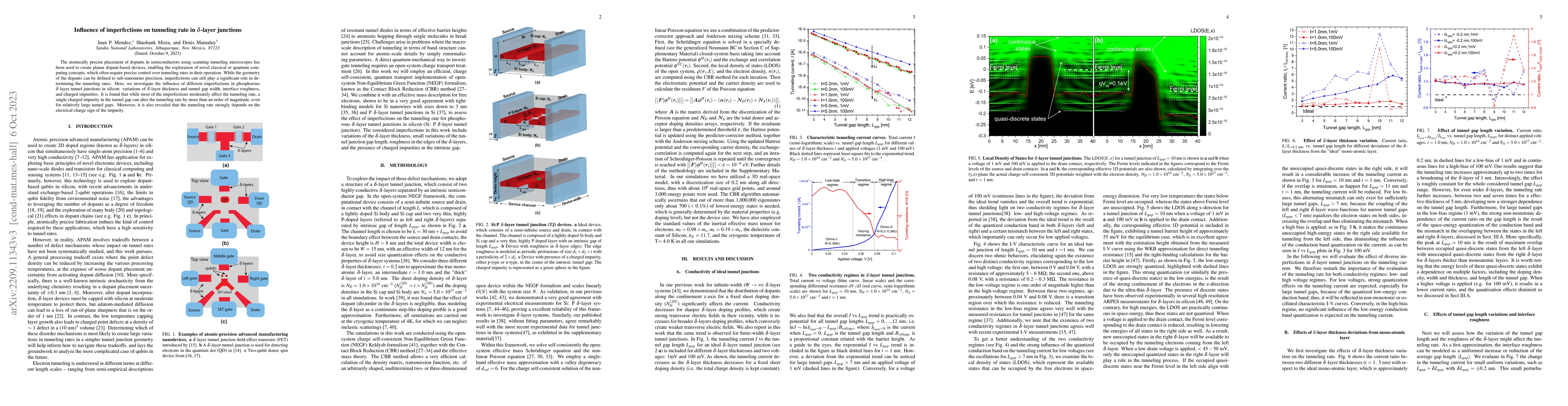 The atomically precise placement of dopants in semiconductors using scanning tunneling microscopes has been used to create planar dopant-based devices, enabling the exploration of novel classical or quantum computing concepts, which often require precise control over tunneling rates in their operation. While the geometry of the dopants can be defined to sub-nanometer precision, imperfections can still play a significant role in determining the tunneling rates. Here, we investigate the influence of different imperfections in phosphorous $\delta$-layer tunnel junctions in silicon: variations of $\delta$-layer thickness and tunnel gap width, interface roughness, and charged impurities. It is found that while most of the imperfections moderately affect the tunneling rate, a single charged impurity in the tunnel gap can alter the tunneling rate by more than an order of magnitude, even for relatively large tunnel gaps. Moreover, it is also revealed that the tunneling rate strongly depends on the electrical charge sign of the impurity.