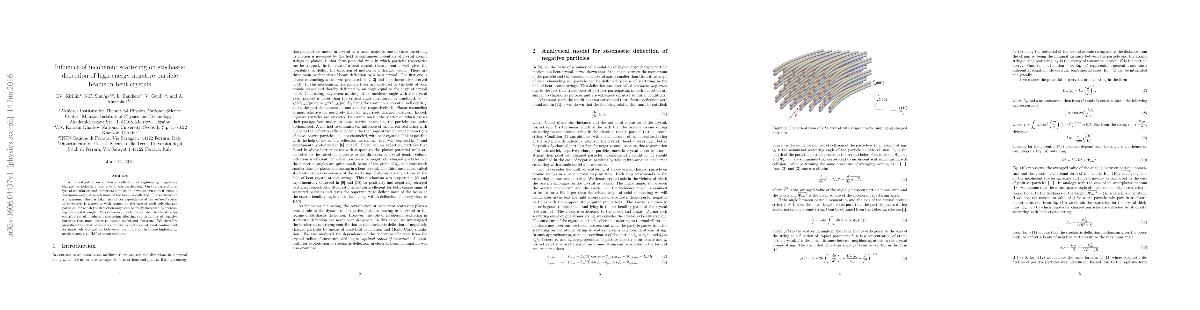 Researchers found that high-energy negative particle beams in bent crystals can be deflected to a maximum angle, which is dependent on the crystal's radius of curvature. This discovery is significant for future accelerators like ILC or muon colliders.
