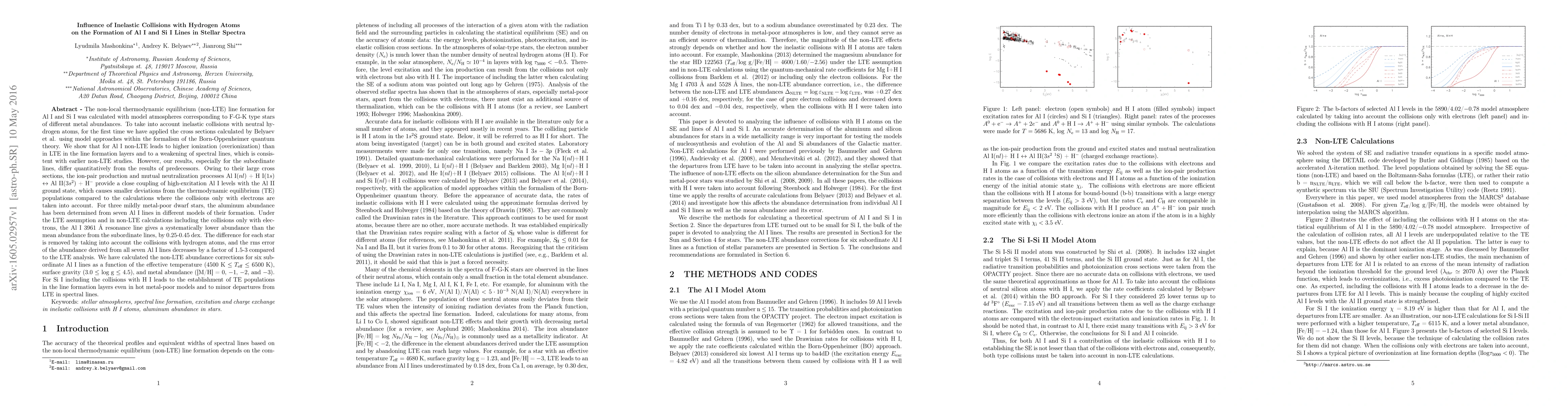 The non-LTE line formation for Al I and Si I was calculated with model atmospheres corresponding to F-G-K type stars of different metallicity. To account for inelastic collisions with H I, for the first time we applied the cross sections calculated by Belyaev et al. using model approaches within the formalism of the Born-Oppenheimer quantum theory. For Al I non-LTE leads to overionization in the line formation layers and to weakened spectral lines, in line with earlier non-LTE studies. However, in contrast to the previuos studies, our results predict smaller magnitude of the non-LTE effects for the subordinate lines. Owing to large cross sections, the ion-pair production and mutual neutralization processes Al I(nl) + H I(1s) $\leftrightarrow$ Al~II(3s^2) + H^- provide a close coupling of high-excitation Al I levels to the Al II ground state, which causes smaller deviations from the TE populations compared to the case of pure electron collisions. For three metal-poor stars, the Al abundance was determined from seven lines in different models of their formation. In LTE and in non-LTE calculations with pure electron collisions, the Al I 3961 A resonance line gives a 0.25-0.45 dex lower abundance than the mean from the subordinate lines. The difference is removed by accounting for the collisions with H I, and the rms error of the abundance from all seven lines decreases by a factor of 1.5-3 compared to LTE. We calculated the non-LTE abundance corrections for six Al I lines depending on Teff (4500-6500 K), log g (3.0-4.5), and [Fe/H] (0, -1, -2, -3). For Si I including the collisions with H I leads to TE populations in the line formation layers and to minor departures from LTE in spectral lines.