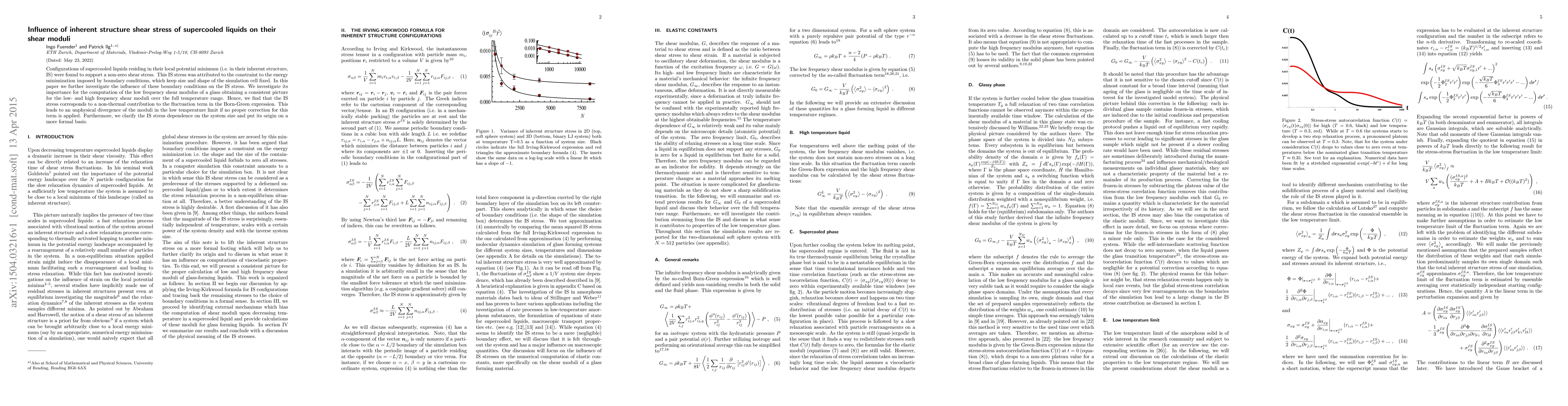This paper investigates how inherent structure shear stress in supercooled liquids affects their shear moduli, finding that boundary conditions influence this stress and contribute to a non-thermal fluctuation term in the Born-Green expression, leading to an unphysical divergence in moduli at low temperatures without correction. It also clarifies the dependence of this stress on system size.