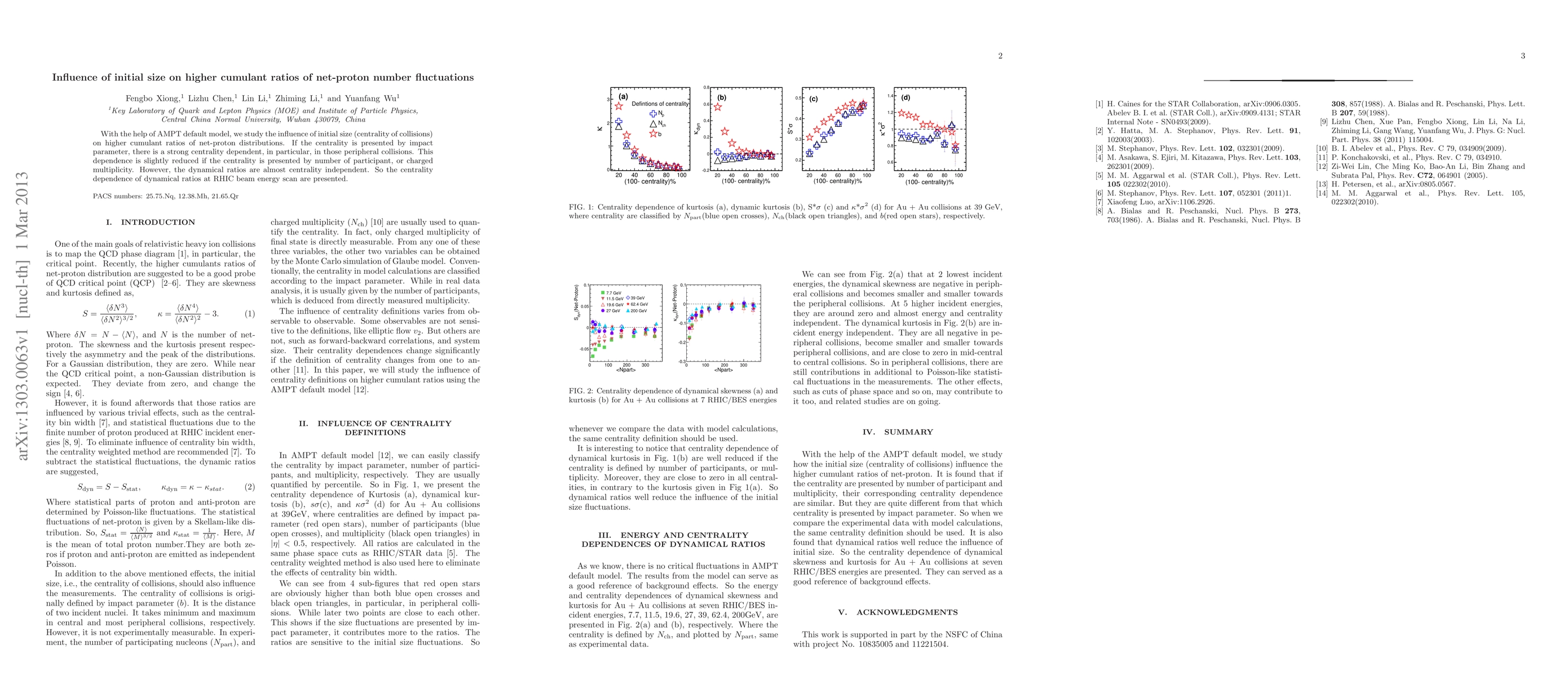 With the help of AMPT default model, we study the influence of initial size (centrality of collisions) on higher cumulant ratios of net-proton distributions. If the centrality is presented by impact parameter, there is a strong centrality dependent, in particular, in those peripheral collisions. This dependence is slightly reduced if the centrality is presented by number of participant, or charged multiplicity. However, the dynamical ratios are almost centrality independent. So the centrality dependence of dynamical ratios at RHIC beam energy scan are presented.
