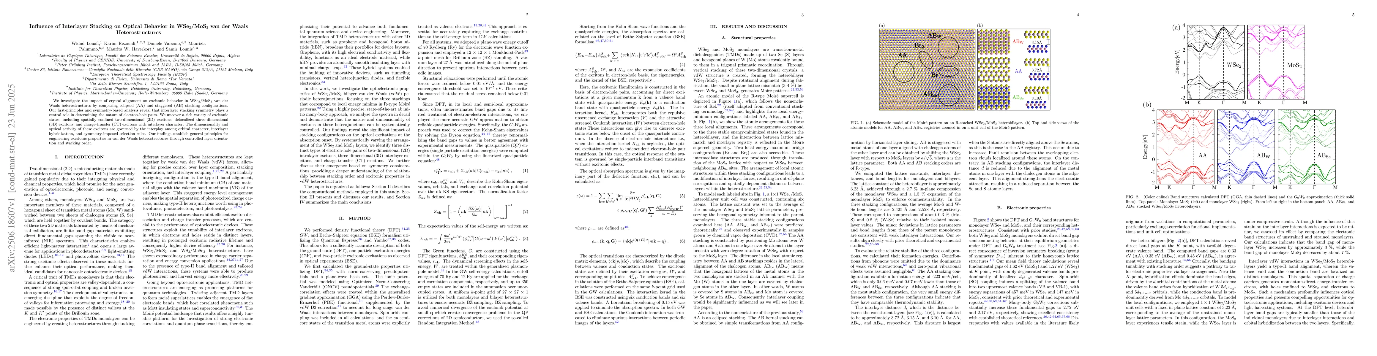 We investigate the impact of crystal alignment on excitonic behavior in WSe$_{2}$/MoS$_{2}$ van der Waals heterostructures by comparing eclipsed (AA) and staggered (AB) stacking configurations. Our first-principles and symmetry-based analysis reveal that interlayer stacking symmetry plays a central role in determining the nature of electron-hole pairs. We uncover a rich variety of excitonic states, including spatially confined two-dimensional (2D) excitons, delocalized three-dimensional (3D) excitons, and charge-transfer (CT) excitons with interlayer character. The dimensionality and optical activity of these excitons are governed by the interplay among orbital character, interlayer hybridization, and symmetry-imposed selection rules. Our findings establish general principles for engineering excitonic properties in van der Waals heterostructures through controlled layer orientation and stacking order.