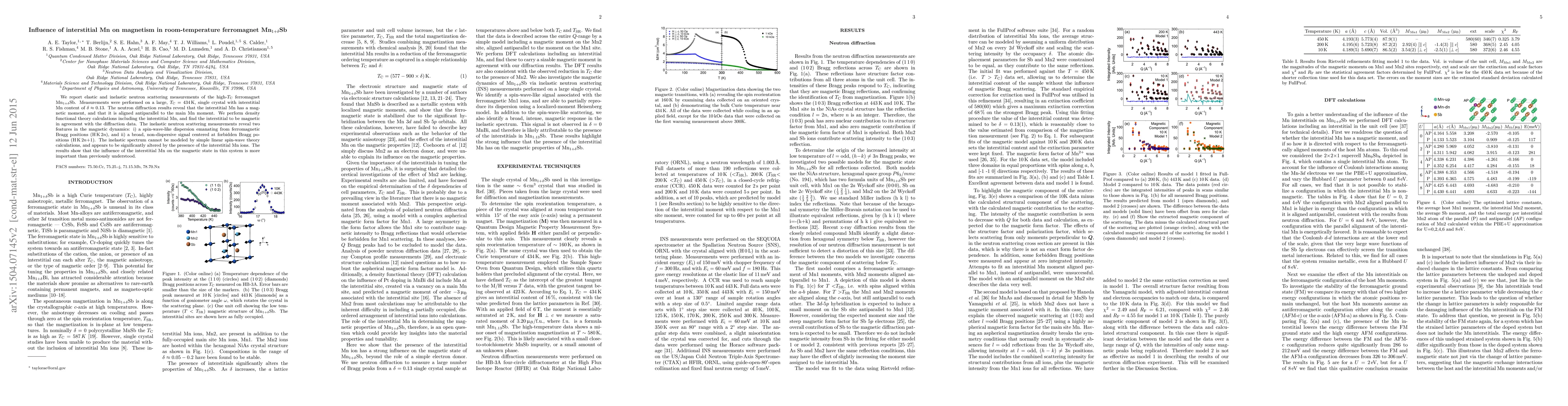 We report elastic and inelastic neutron scattering measurements of the high-TC ferromagnet Mn(1+delta)Sb. Measurements were performed on a large, TC=434 K, single crystal with interstitial Mn content of delta~0.13. The neutron diffraction results reveal that the interstitial Mn has a magnetic moment, and that it is aligned antiparallel to the main Mn moment. We perform density functional theory calculations including the interstitial Mn, and find the interstitial to be magnetic in agreement with the diffraction data. The inelastic neutron scattering measurements reveal two features in the magnetic dynamics: i) a spin-wave-like dispersion emanating from ferromagnetic Bragg positions (H K 2n), and ii) a broad, non-dispersive signal centered at forbidden Bragg positions (H$\,$K$\,$2$n$+1). The inelastic spectrum cannot be modeled by simple linear spin-wave theory calculations, and appears to be significantly altered by the presence of the interstitial Mn ions. The results show that the influence of the interstitial Mn on the magnetic state in this system is more important than previously understood.
