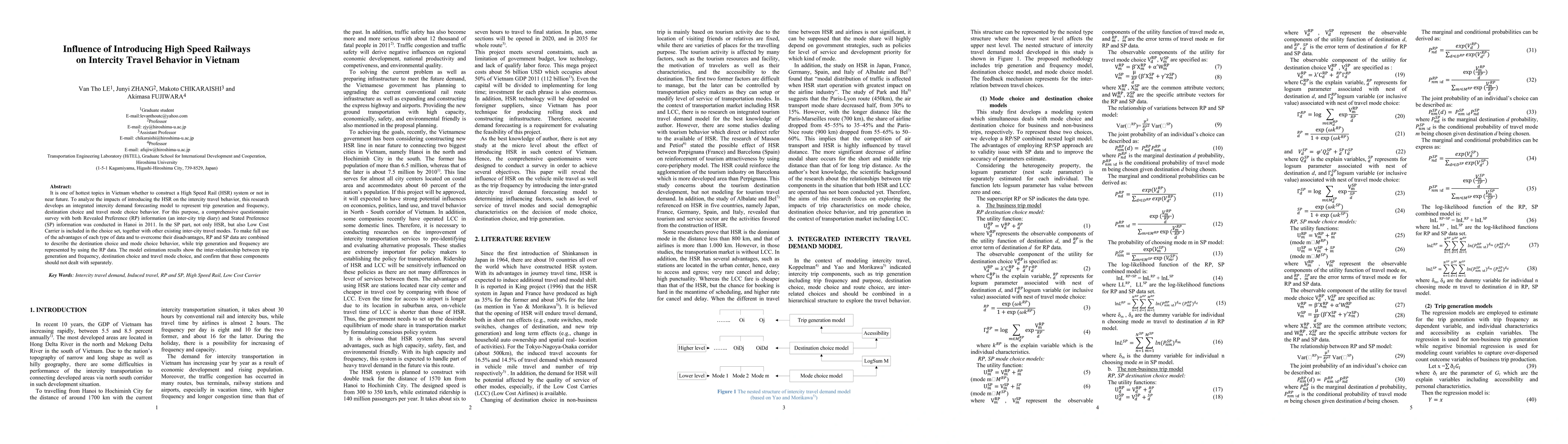 This research develops an integrated intercity demand forecasting model to analyze the impact of introducing a High Speed Rail (HSR) system on travel behavior in Vietnam, using combined Revealed and Stated Preference data from Hanoi. The findings highlight the inter-relationships between trip generation, frequency, destination choice, and travel mode choice, emphasizing the need for an integrated approach.
