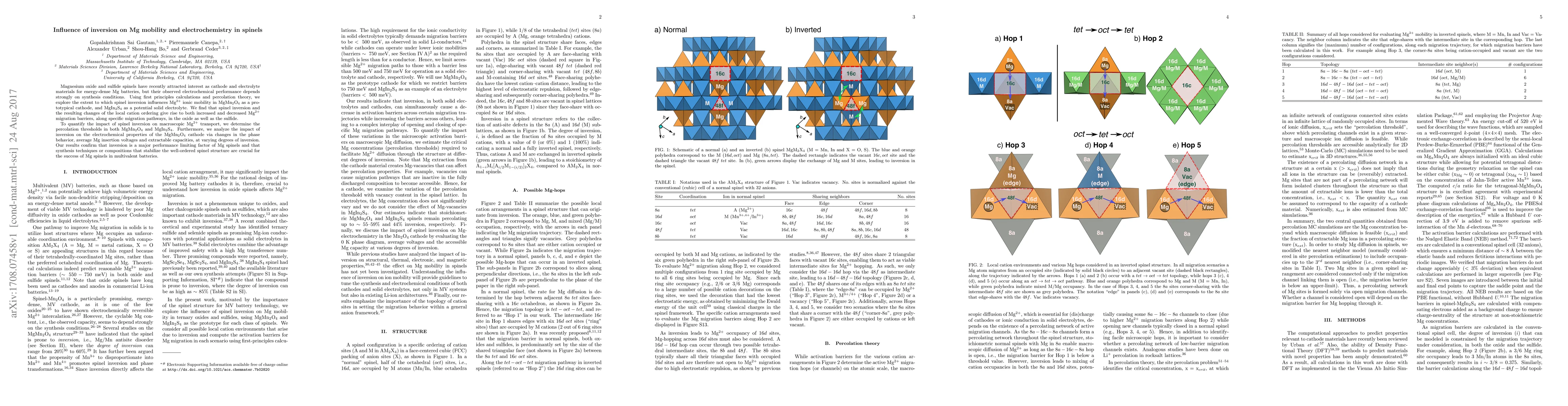 Magnesium oxide and sulfide spinels have recently attracted interest as cathode and electrolyte materials for energy-dense Mg batteries, but their observed electrochemical performance depends strongly on synthesis conditions. Using first principles calculations and percolation theory, we explore the extent to which spinel inversion influences Mg$^{2+}$ ionic mobility in MgMn$_2$O$_4$ as a prototypical cathode, and MgIn$_2$S$_4$ as a potential solid electrolyte. We find that spinel inversion and the resulting changes of the local cation ordering give rise to both increased and decreased Mg$^{2+}$ migration barriers, along specific migration pathways, in the oxide as well as the sulfide. To quantify the impact of spinel inversion on macroscopic Mg$^{2+}$ transport, we determine the percolation thresholds in both MgMn$_2$O$_4$ and MgIn$_2$S$_4$. Furthermore, we analyze the impact of inversion on the electrochemical properties of the MgMn$_2$O$_4$ cathode via changes in the phase behavior, average Mg insertion voltages and extractable capacities, at varying degrees of inversion. Our results confirm that inversion is a major performance limiting factor of Mg spinels and that synthesis techniques or compositions that stabilize the well-ordered spinel structure are crucial for the success of Mg spinels in multivalent batteries.
