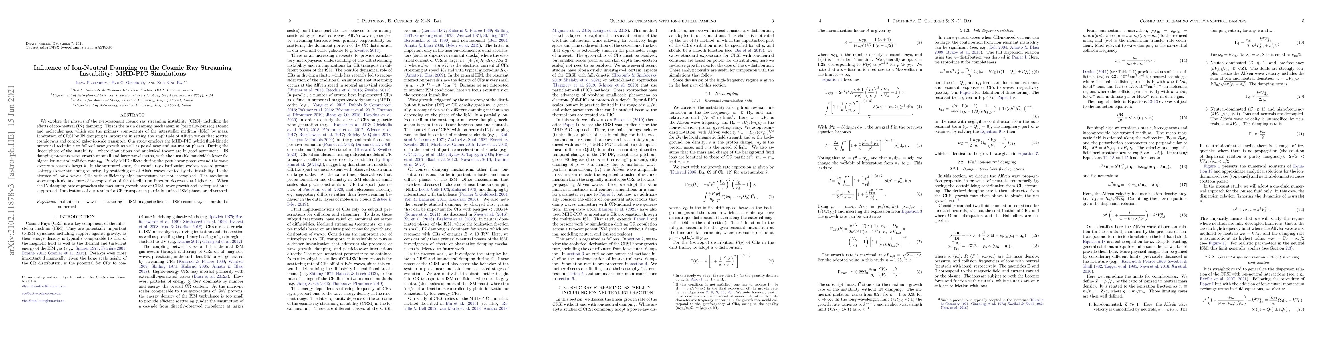 We explore the physics of the gyro-resonant cosmic ray streaming instability (CRSI) including the effects of ion-neutral (IN) damping. This is the main damping mechanism in (partially-ionized) atomic and molecular gas, which are the primary components of the interstellar medium (ISM) by mass. Limitation of CRSI by IN damping is important in setting the amplitude of Alfv\'en waves that scatter cosmic rays and control galactic-scale transport. Our study employs the MHD-PIC hybrid fluid-kinetic numerical technique to follow linear growth as well as post-linear and saturation phases. During the linear phase of the instability -- where simulations and analytical theory are in good agreement -- IN damping prevents wave growth at small and large wavelengths, with the unstable bandwidth lower for higher ion-neutral collision rate $\nu_{\rm in}$. Purely MHD effects during the post-linear phase extend the wave spectrum towards larger $k$. In the saturated state, the cosmic ray distribution evolves toward greater isotropy (lower streaming velocity) by scattering off of Alv\'en waves excited by the instability. In the absence of low-$k$ waves, CRs with sufficiently high momentum are not isotropized. The maximum wave amplitude and rate of isotropization of the distribution function decreases at higher $\nu_{\rm in}$. When the IN damping rate approaches the maximum growth rate of CSRI, wave growth and isotropization is suppressed. Implications of our results for CR transport in partially ionized ISM phases are discussed.