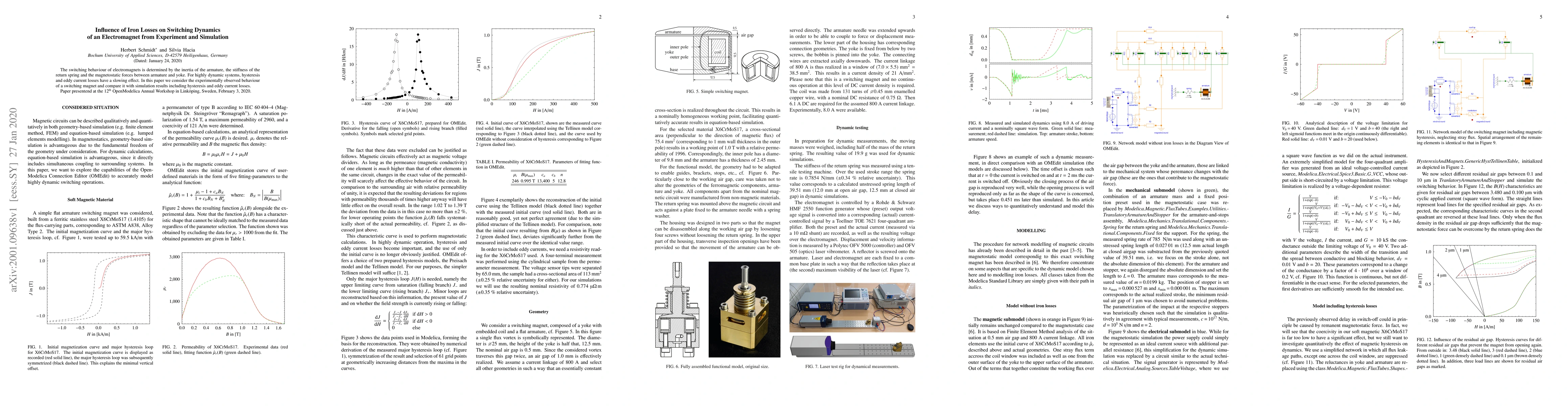 The switching behaviour of electromagnets is determined by the inertia of the armature, the stiffness of the return spring and the magnetostatic forces between armature and yoke. For highly dynamic systems, hysteresis and eddy current losses have a slowing effect. In this paper we consider the experimentally observed behaviour of a switching magnet and compare it with simulation results including hysteresis and eddy current losses.