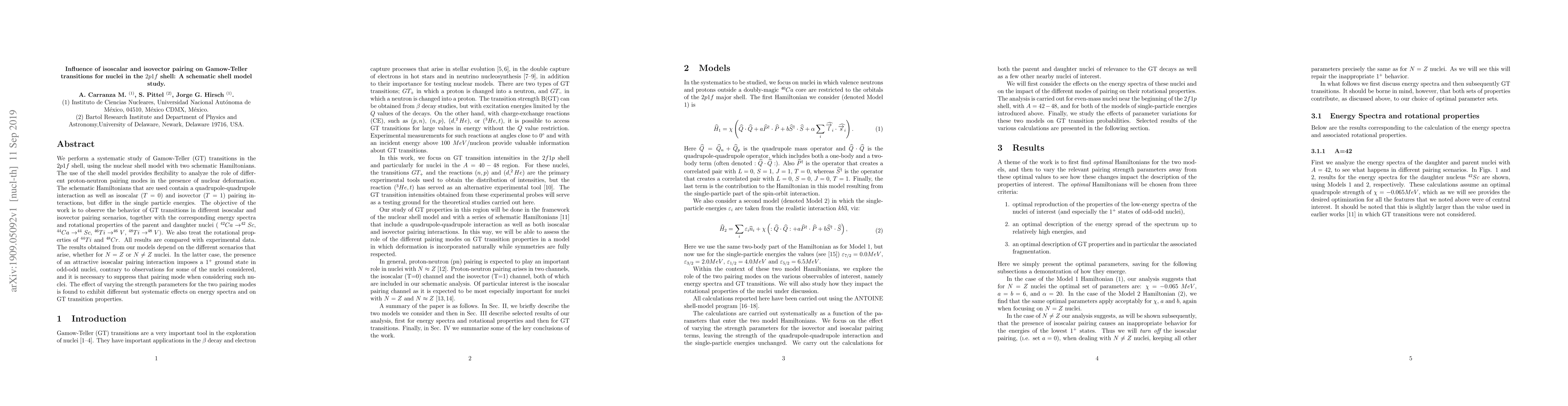 The development and application of schematic shell model Hamiltonians with tunable isoscalar and isovector pairing interactions to analyze Gamow-Teller transitions in specific nuclear shells.