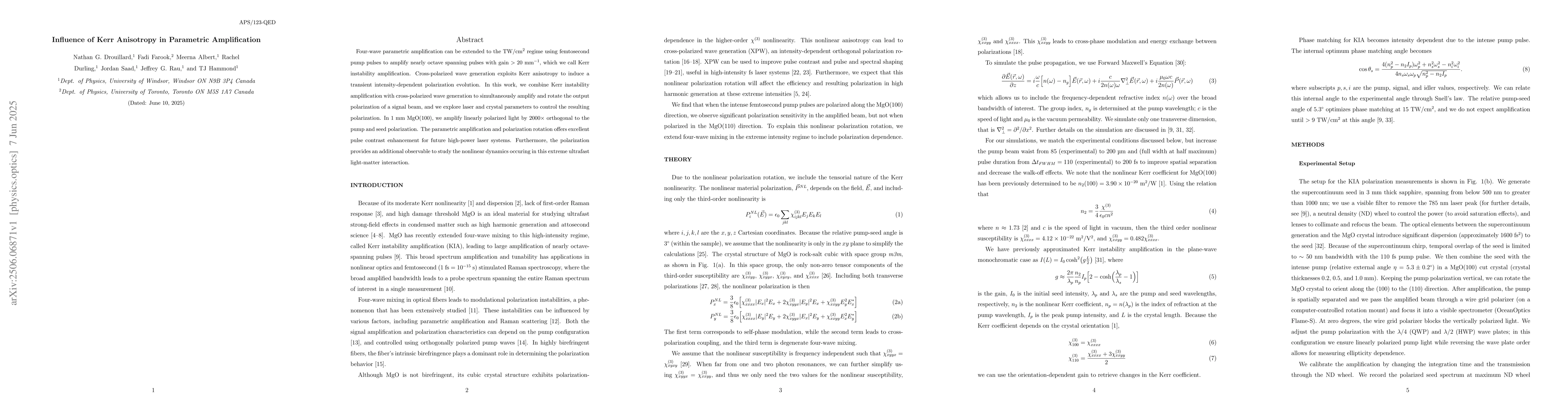 The research employed a combination of theoretical modeling and experimental verification to investigate Kerr-based parametric amplification.