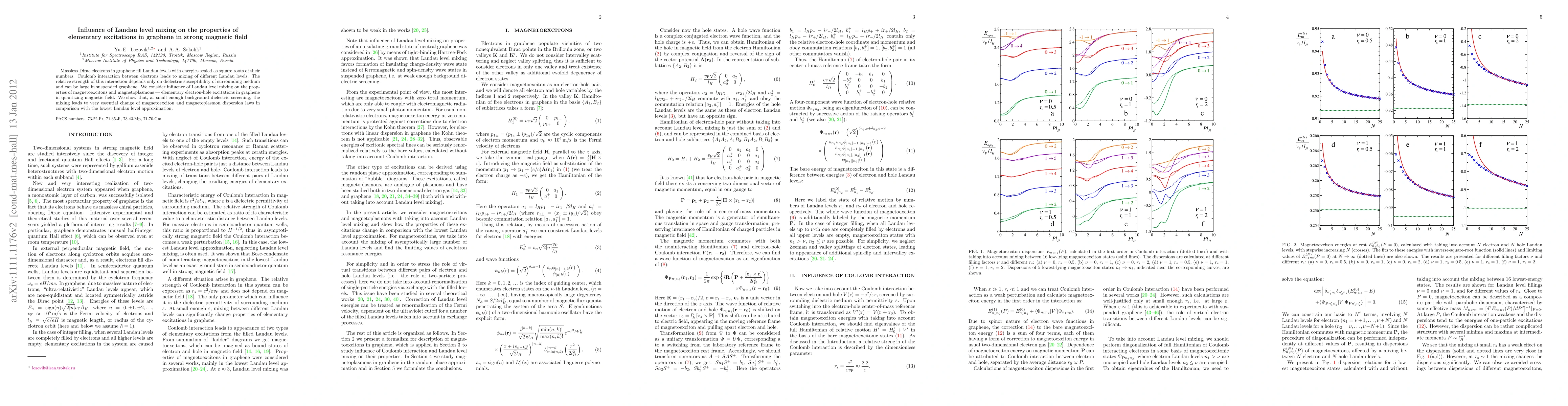 This paper investigates how Landau level mixing affects the properties of magnetoexcitons and magnetoplasmons in graphene under strong magnetic fields. It finds that Coulomb interaction-induced mixing significantly alters the dispersion laws of these excitations, especially when background dielectric screening is weak.