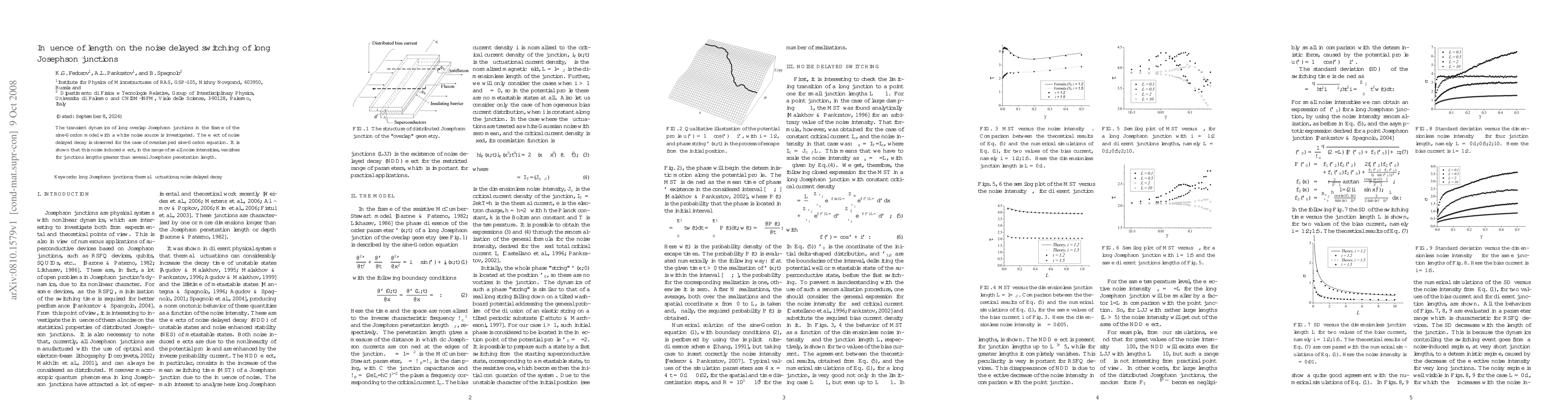 This paper investigates the transient dynamics of long Josephson junctions under the sine-Gordon model with a white noise source, finding that noise-induced delayed switching effects diminish for junctions longer than several Josephson penetration lengths.