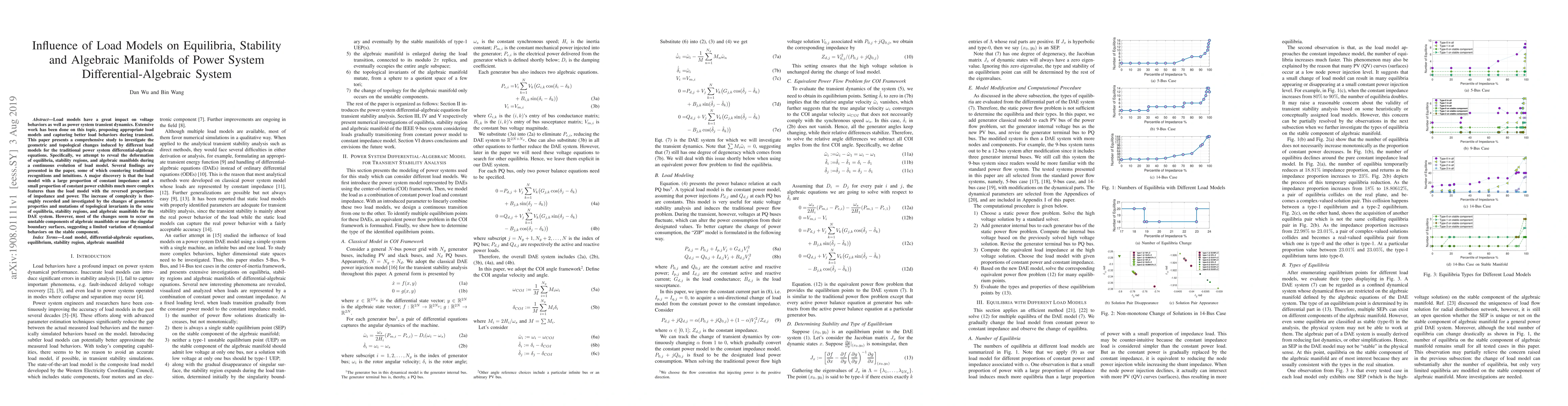 Load models have a great impact on voltage behaviors as well as power system transient dynamics. Extensive work has been done on this topic, proposing appropriate load models and capturing better load behaviors during transient. This paper presents a comprehensive study to investigate the geometric and topological changes induced by different load models for the traditional power system differential-algebraic equations. Specifically, we attempt to reveal the deformation of equilibria, stability regions, and algebraic manifolds during a continuous evolution of load model. Several findings are presented in the paper, some of which countering traditional recognitions and intuitions. A major discovery is that the load model with a large proportion of constant impedance and a small proportion of constant power exhibits much more complex features than the load model with the reversed proportions of impedance and power. The increase of complexity is thoroughly recorded and investigated by the changes of geometric properties and mutations of topological invariants in the sense of equilibria, stability regions, and algebraic manifolds for the DAE system. However, most of the changes seem to occur on unstable components of algebraic manifolds or near the singular boundary surfaces, suggesting a limited variation of dynamical behaviors on the stable component.
