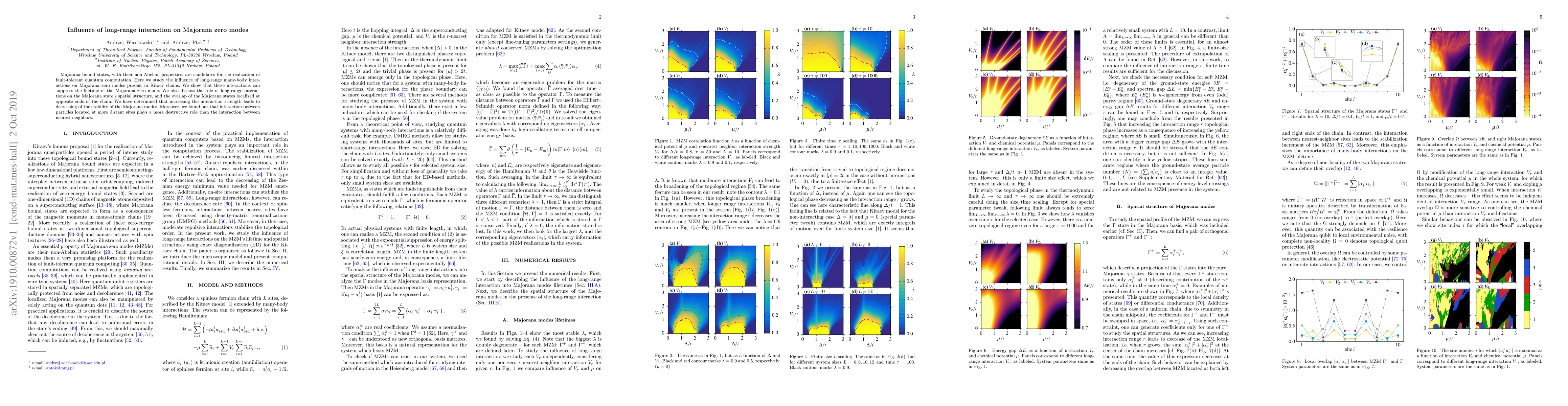 Summary: This study investigates how long-range many-body interactions impact Majorana zero modes in Kitaev chains, revealing that such interactions decrease the stability of these modes and that interactions between distant particles are more detrimental than those between nearest neighbors.