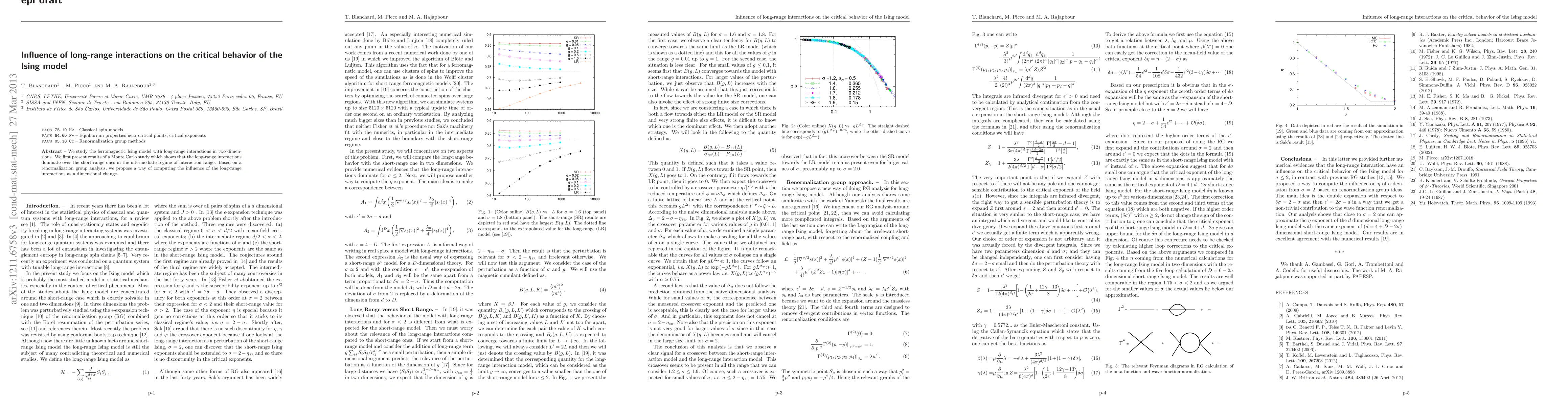Two-line summary: This study investigates the ferromagnetic Ising model with long-range interactions in two dimensions, revealing through Monte Carlo simulations that these interactions dominate in intermediate ranges. The research proposes a renormalization group approach to quantify the dimensional change influenced by long-range interactions.