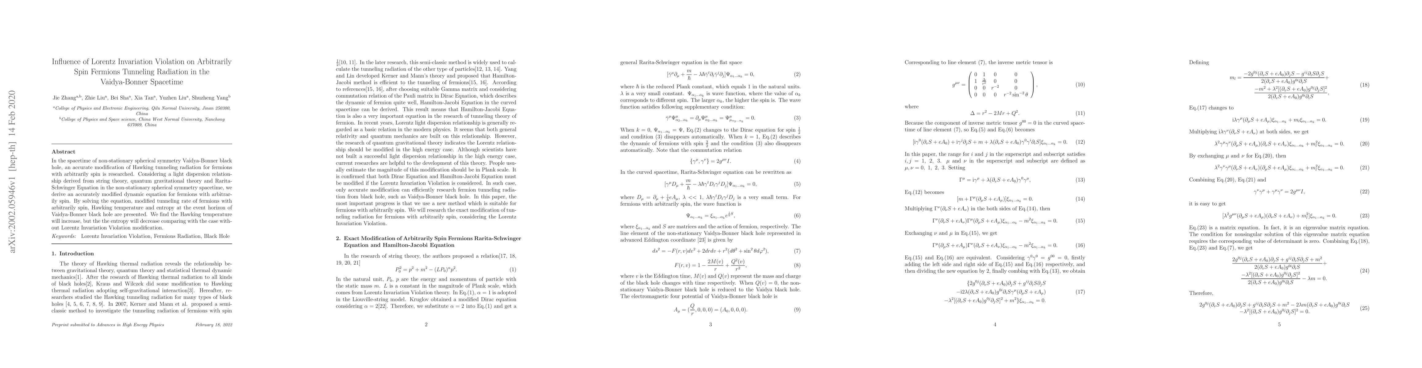 In the spacetime of non-stationary spherical symmetry Vaidya-Bonner black hole, an accurate modification of Hawking tunneling radiation for fermions with arbitrarily spin is researched. Considering a light dispersion relationship derived from string theory, quantum gravitational theory and Rarita-Schwinger Equation in the non-stationary spherical symmetry spacetime, we derive an accurately modified dynamic equation for fermions with arbitrarily spin. By solving the equation, modified tunneling rate of fermions with arbitrarily spin, Hawking temperature and entropy at the event horizon of Vaidya-Bonner black hole are presented. We find the Hawking temperature will increase, but the the entropy will decrease comparing with the case without Lorentz Invariation Violation modification.