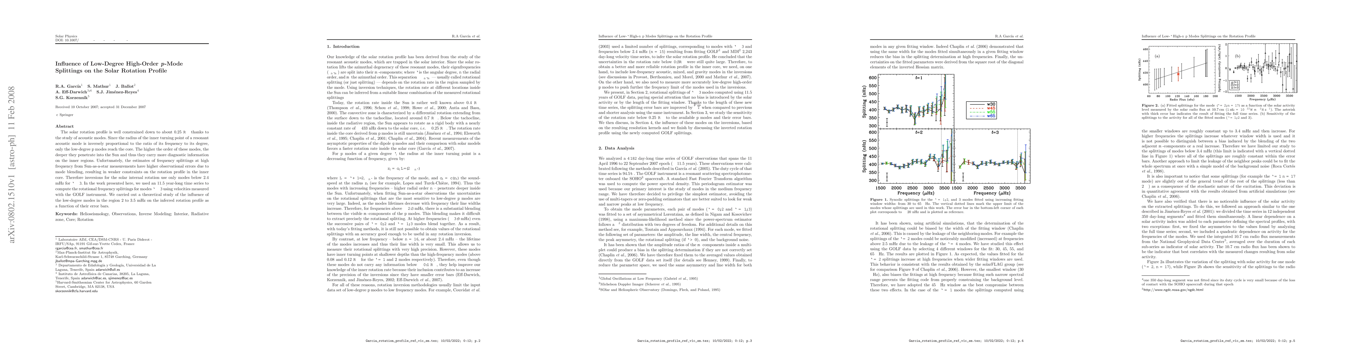 This study investigates how low-degree high-order p-mode splittings affect solar rotation profiles, using an 11.5-year time series and GOLF instrument data. It finds that while high-order modes provide deeper insights into the Sun's core, their frequency splittings are less accurately measured, complicating the inversion of solar internal rotation.