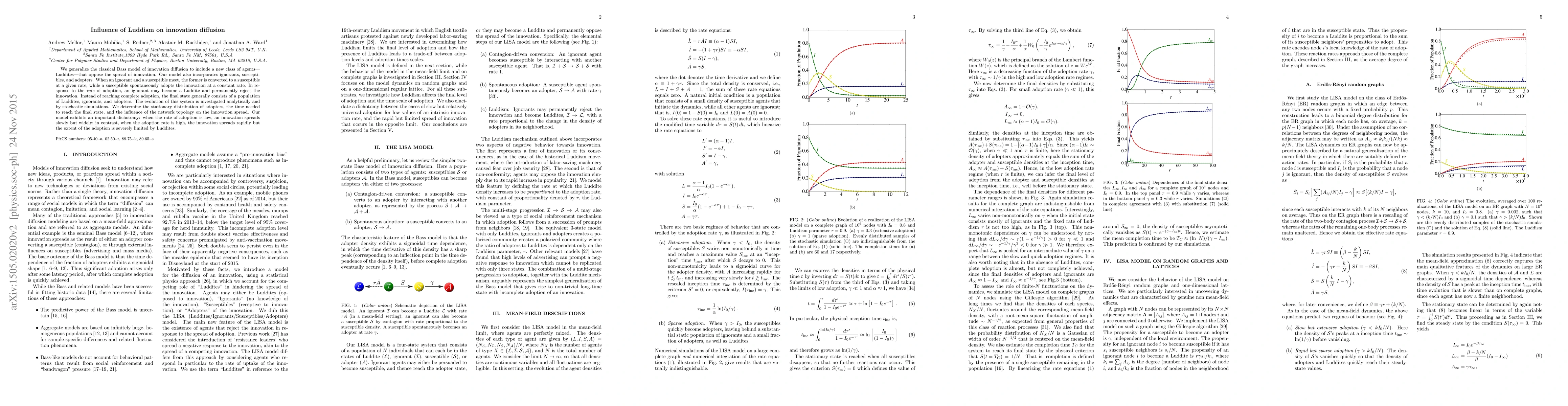 This research paper models how Luddism affects innovation diffusion, showing that high adoption rates can lead to limited spread due to a strong anti-innovation force, while low rates result in slow but widespread adoption.
