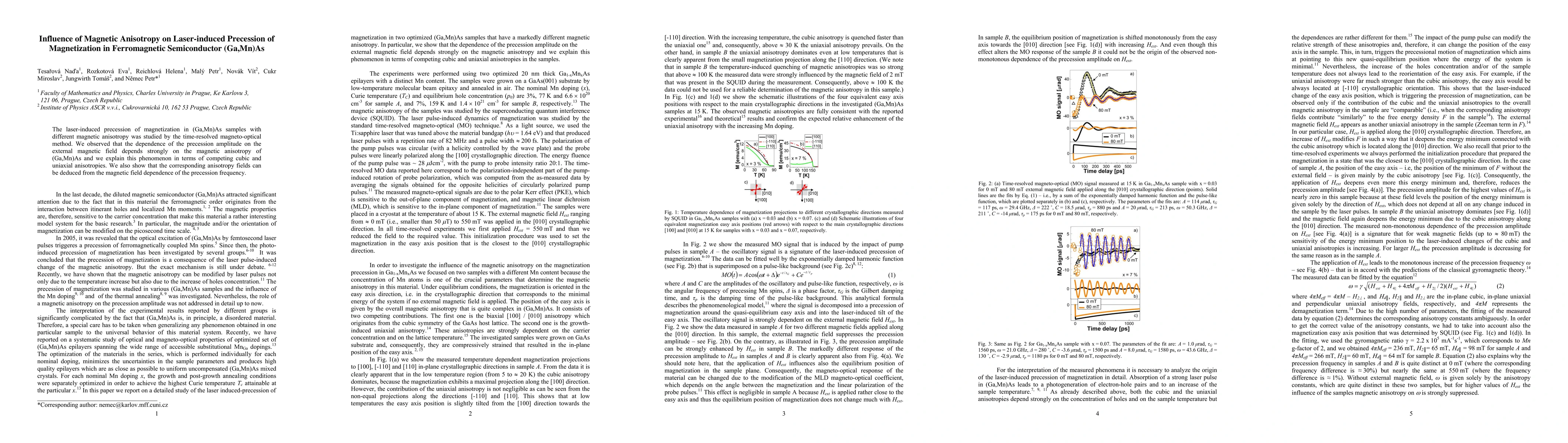 This study investigates the laser-induced precession of magnetization in (Ga,Mn)As, revealing a strong dependence of precession amplitude on the external magnetic field influenced by the material's magnetic anisotropy. The observed phenomenon is explained by competing cubic and uniaxial anisotropies, with anisotropy fields deduced from the magnetic field's effect on precession frequency.