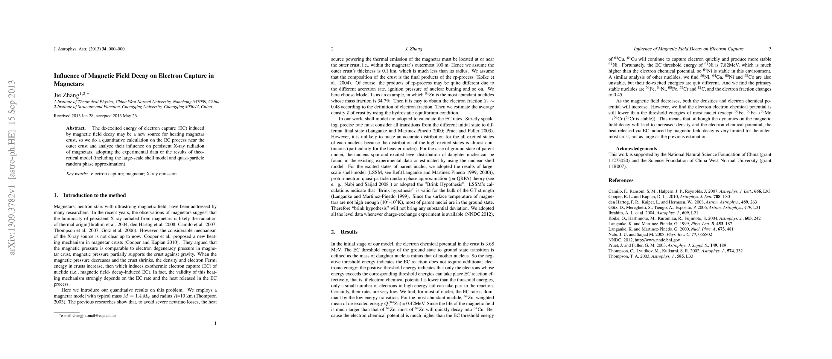 This paper quantitatively analyzes how the decay of magnetic fields in magnetars influences electron capture processes, proposing that this may contribute to crust heating and affect persistent X-ray radiation, using experimental data and theoretical models.